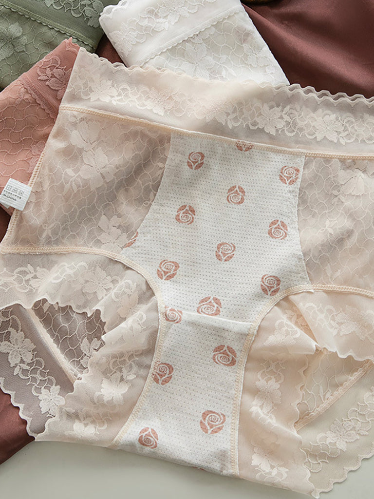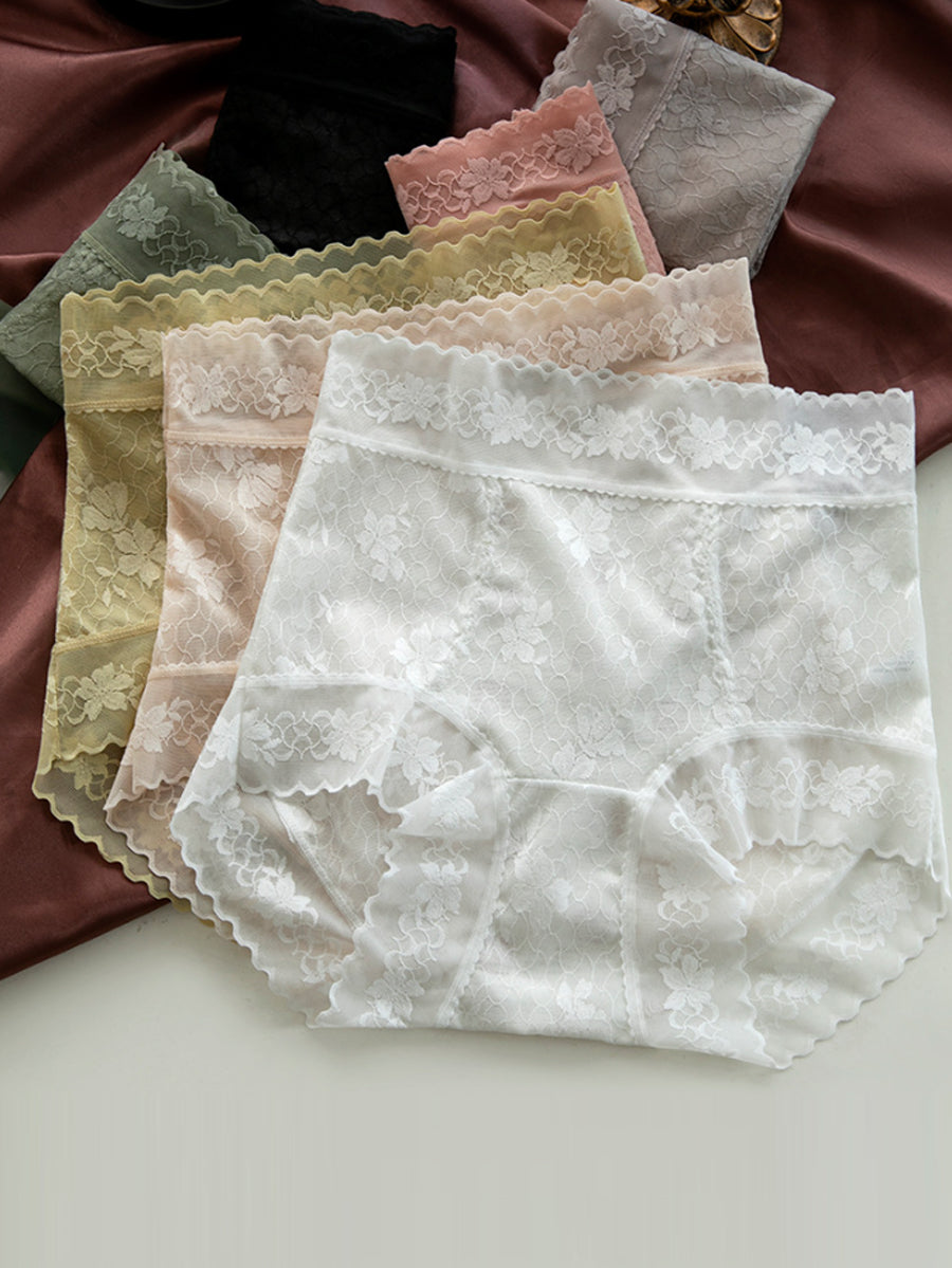 7 Pieces Summer Women Artsy Pure Color Lace Underwear