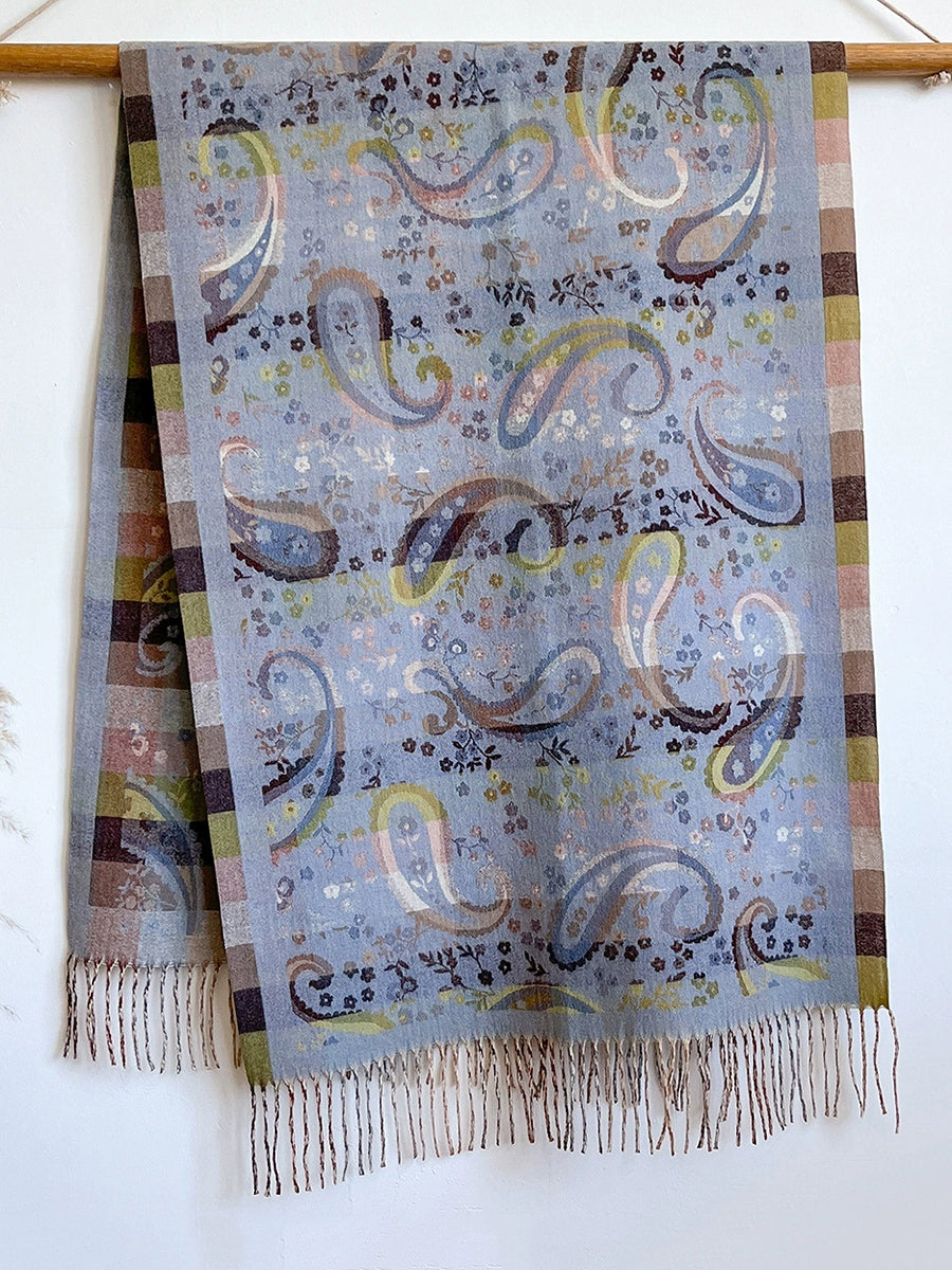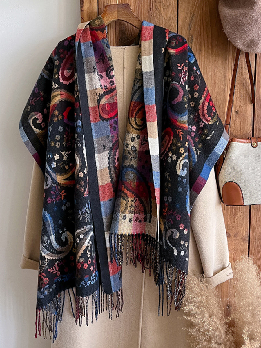 Winter Ethnic Plaid Tassel Shawl Scarf