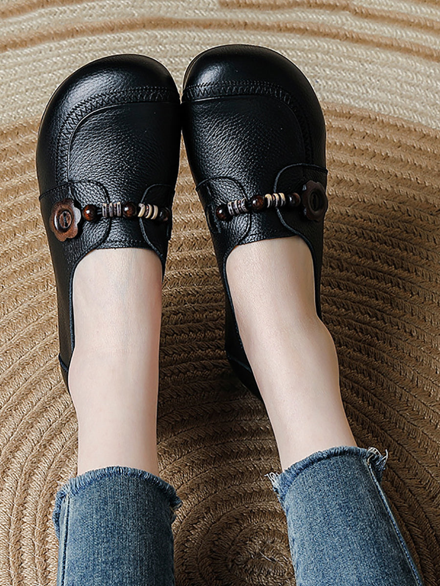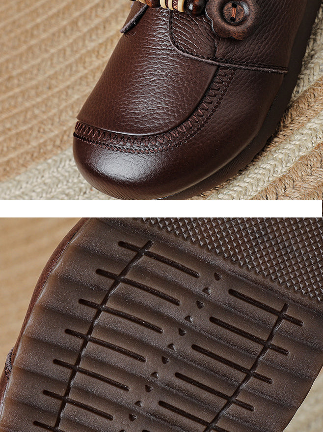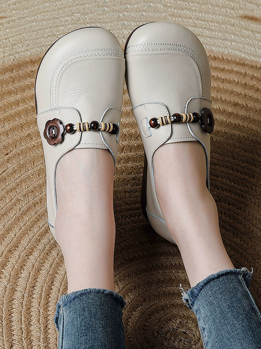 Women Retro Spring Genuine Leather Low Heel Shoes