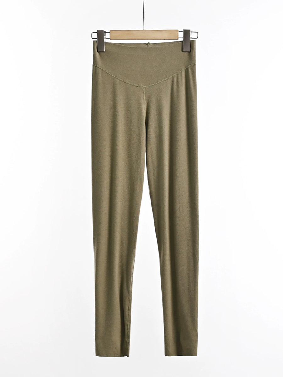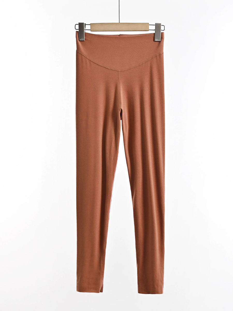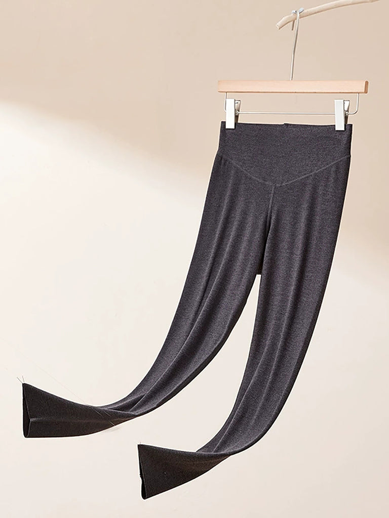 Women Winter Warm Pure Color High Waist Leggings