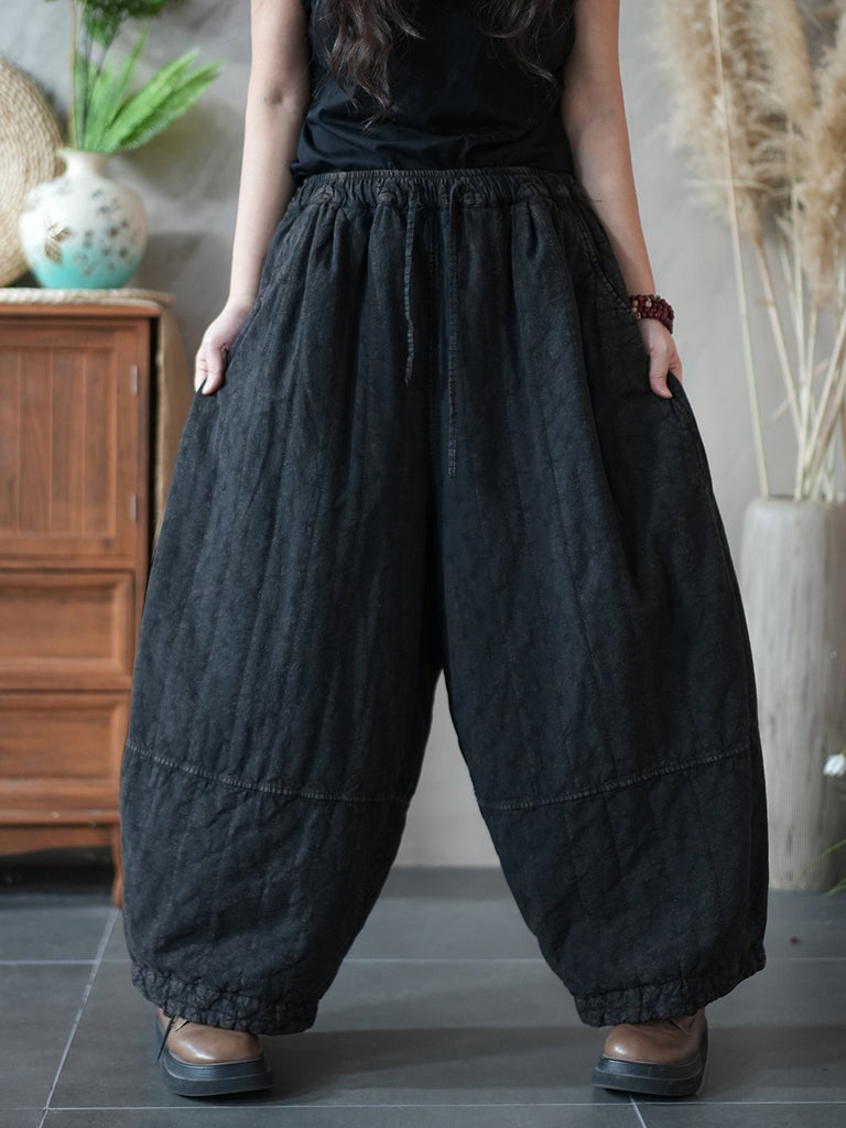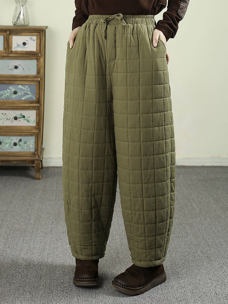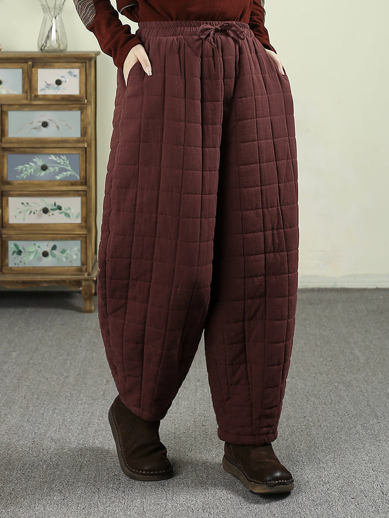 Women Winter Retro Plaid 100%Cotton Padded Harem Pants