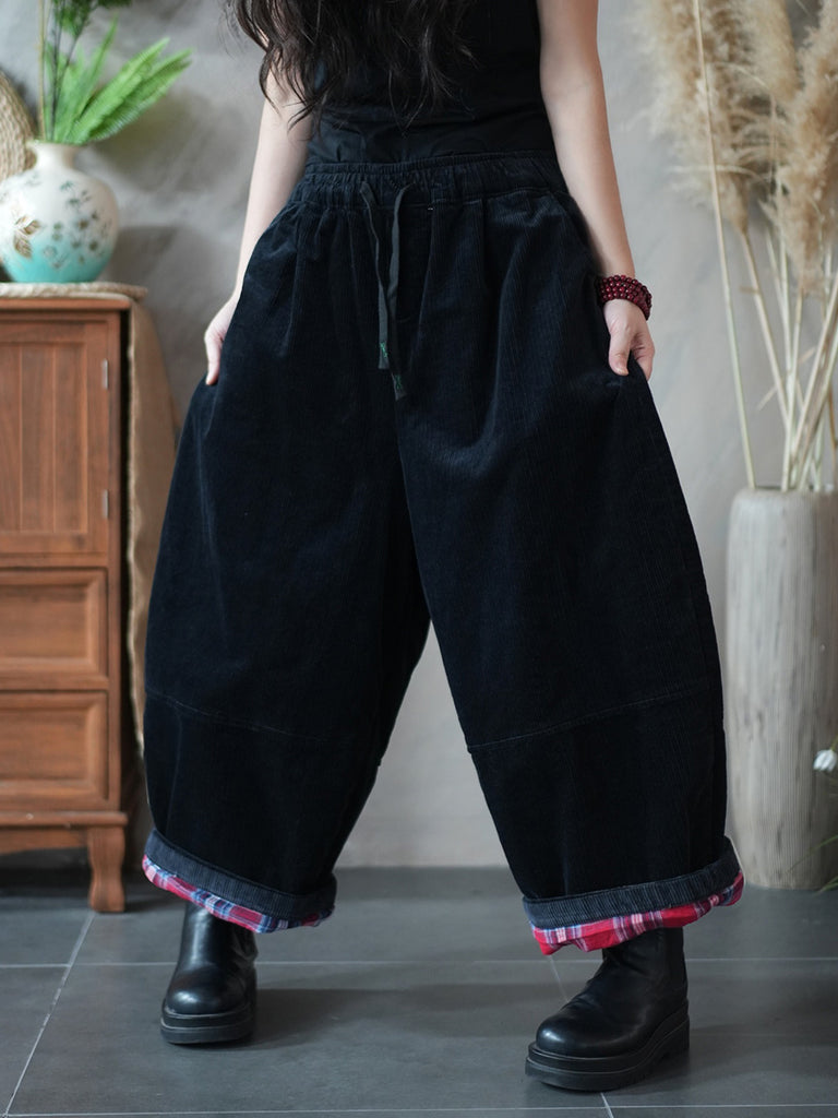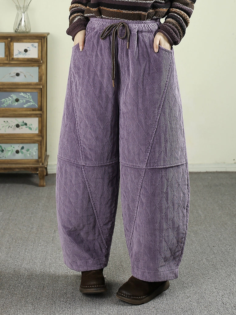 Women Winter Retro Pure Color Corduroy Padded Harem Pants