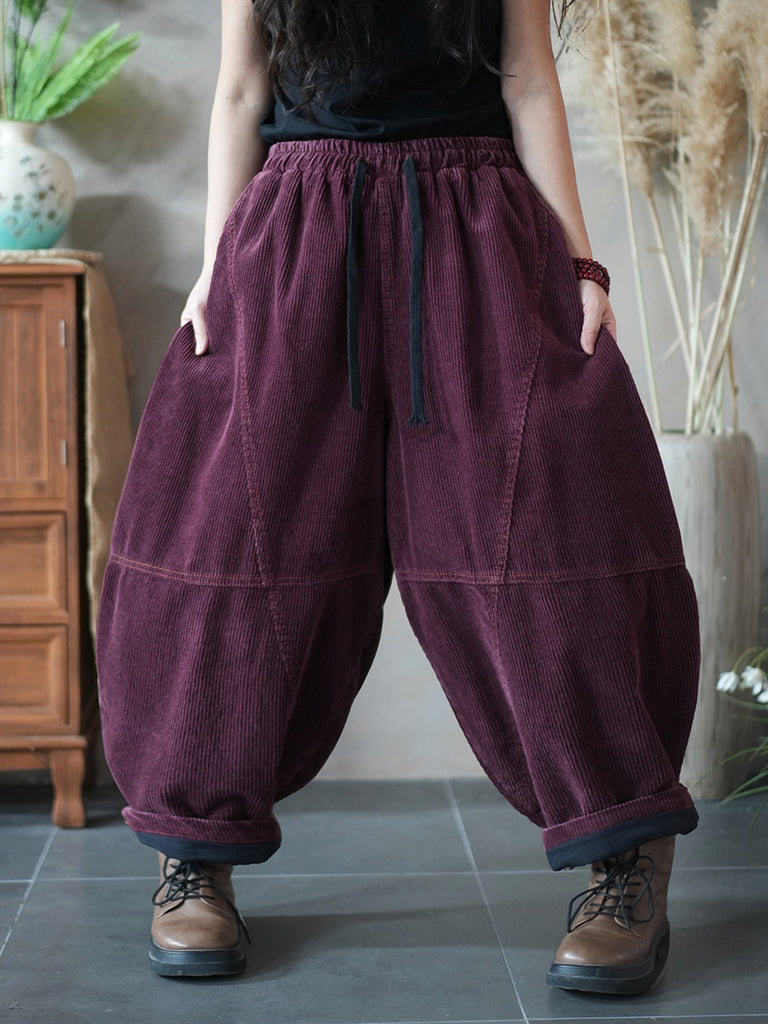 Women Winter Retro Pure Color Corduroy Harem Pants