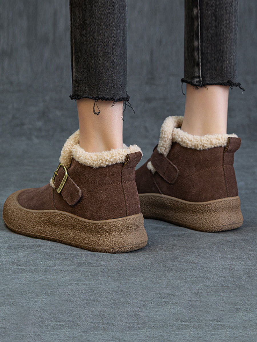 Women Winter Genuine Leather Fleece-lined Ankle Boots