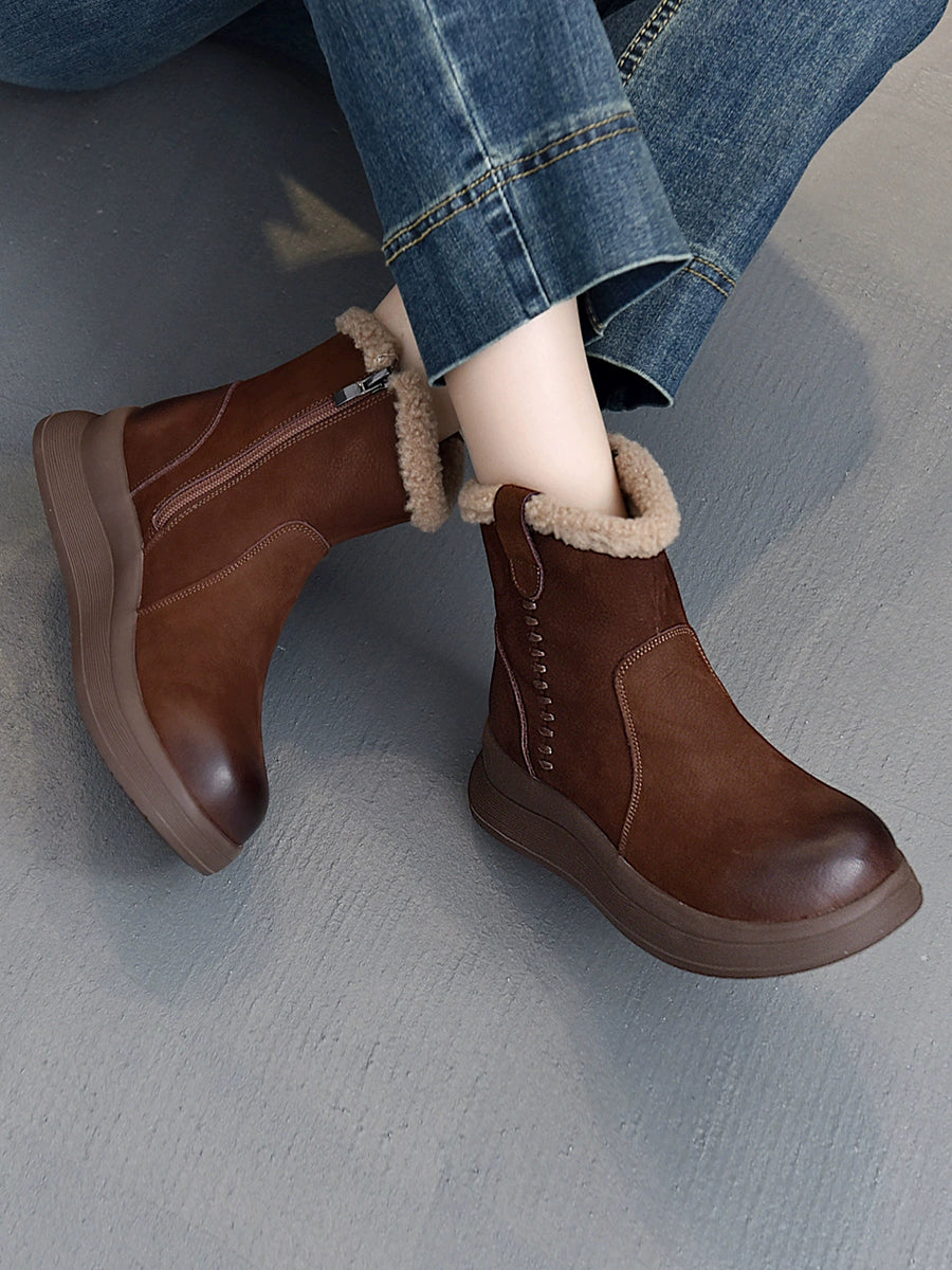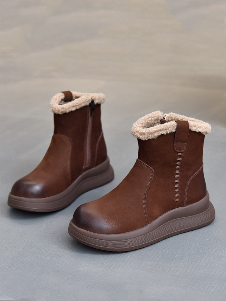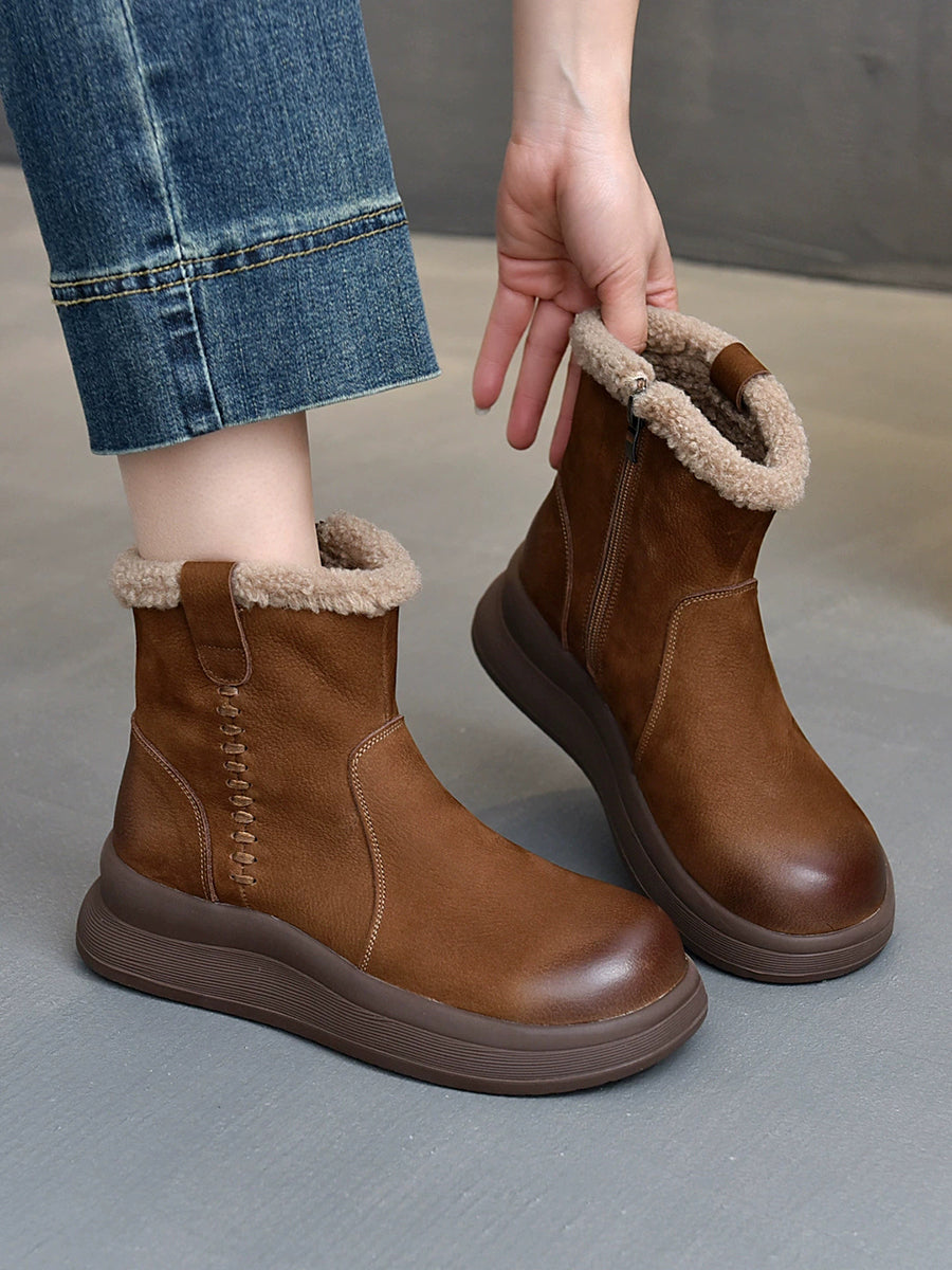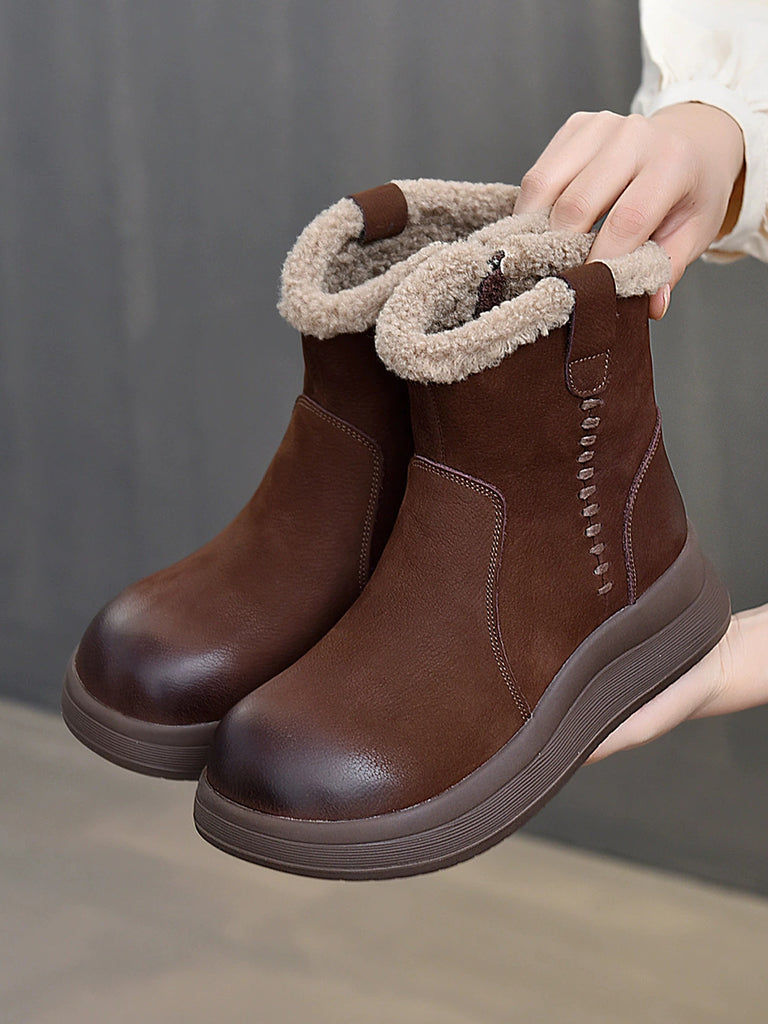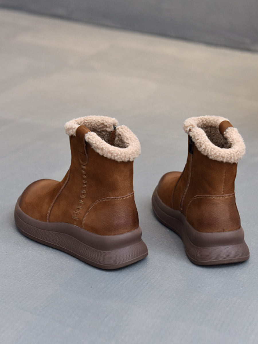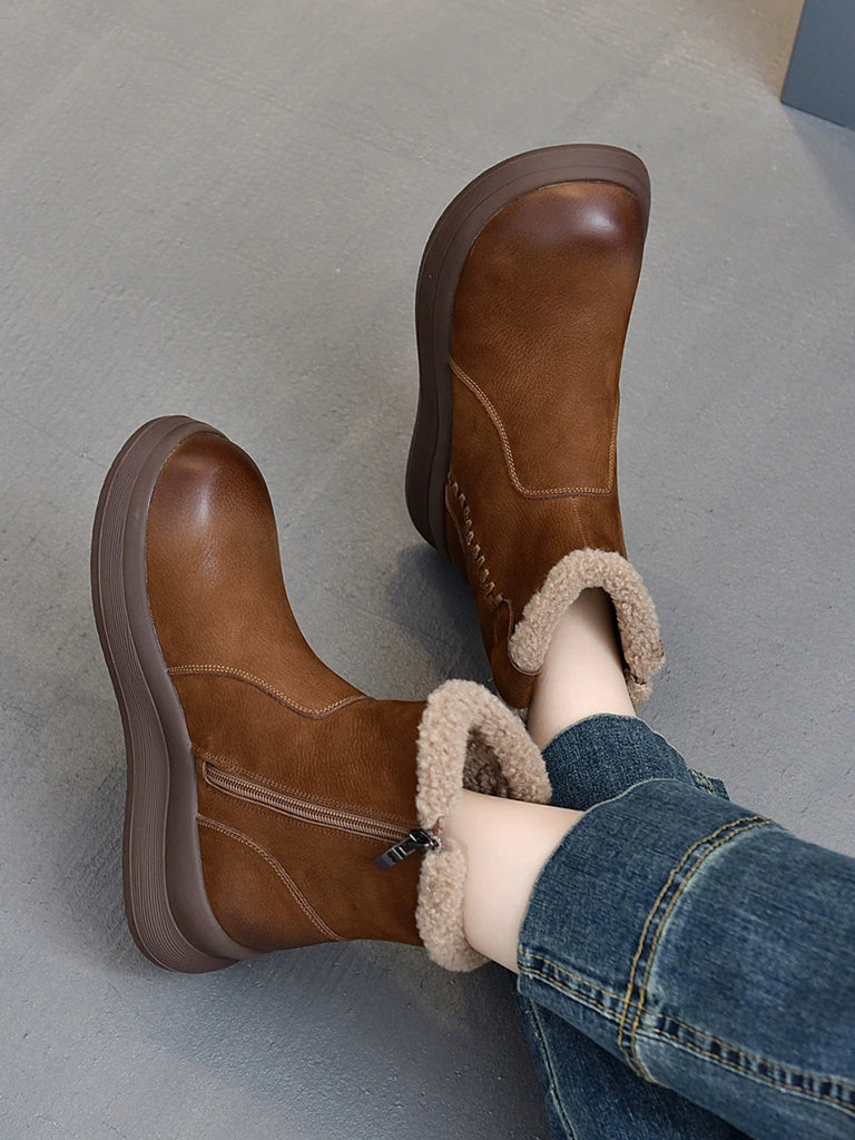 Women Winter Genuine Leather Fleece-lined Boots