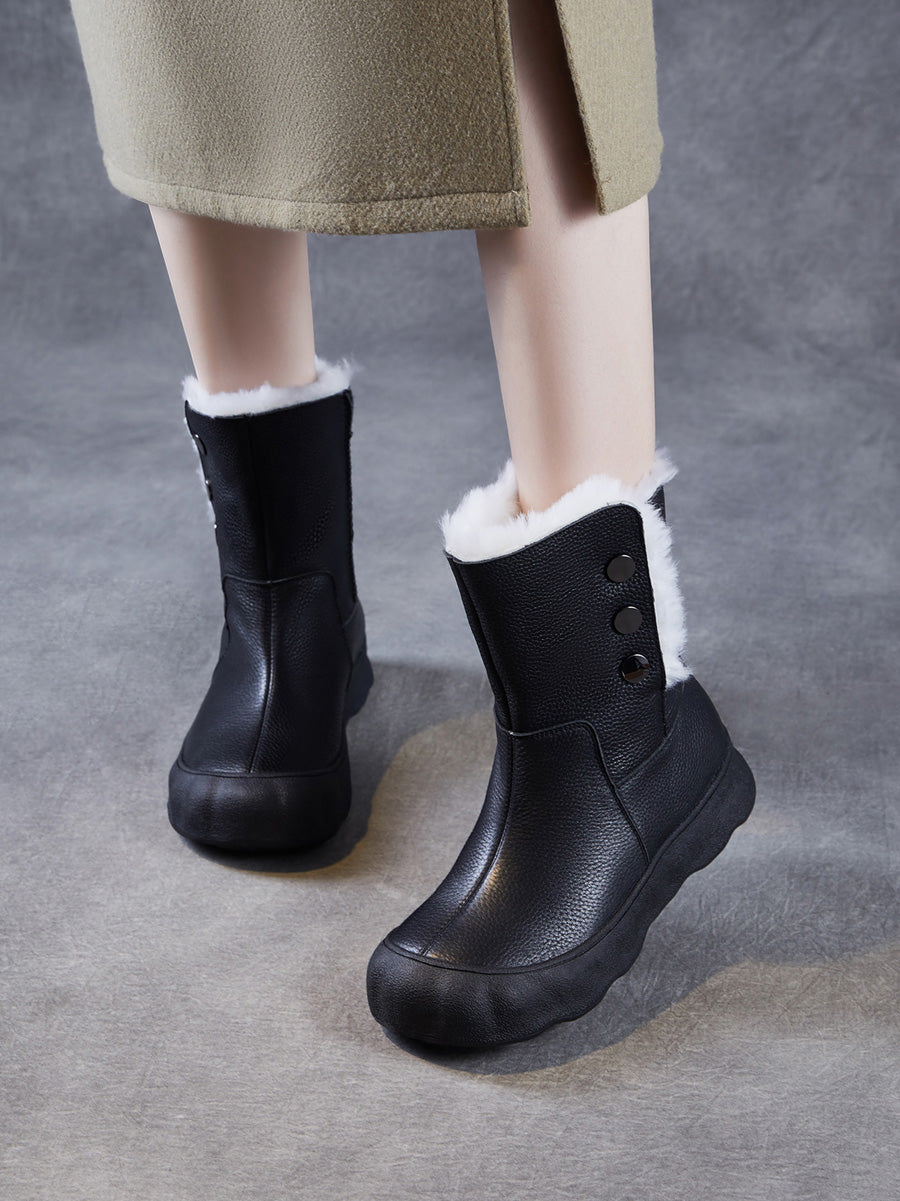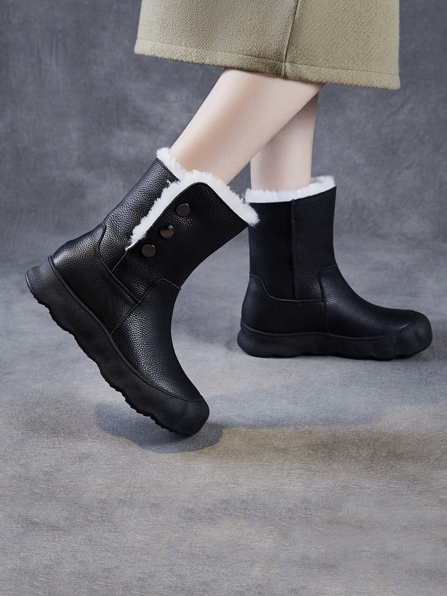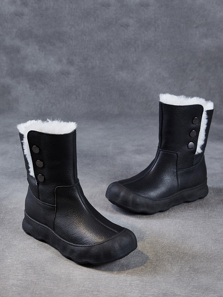 Women Winter Genuine Leather Fleece-lined Mid Heel Boots