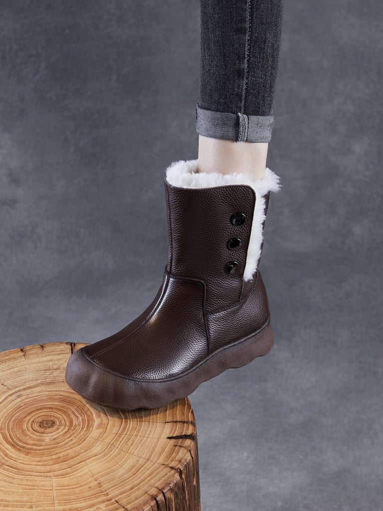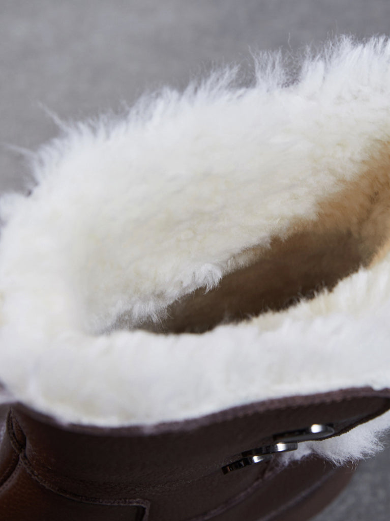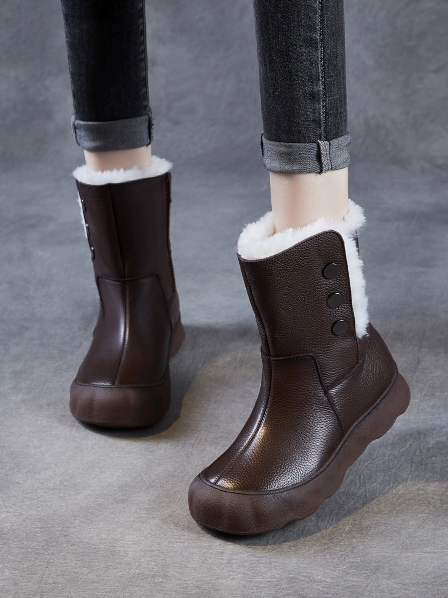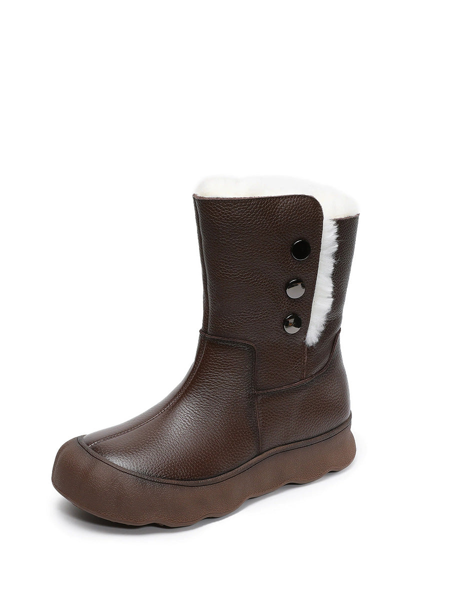 Women Winter Genuine Leather Fleece-lined Mid Heel Boots