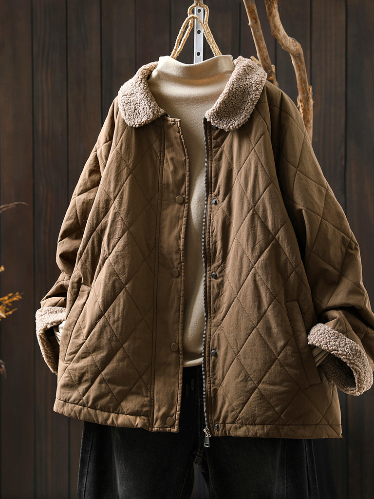 Women Winter Retro Fleece Spliced Turn-down Collar Coat