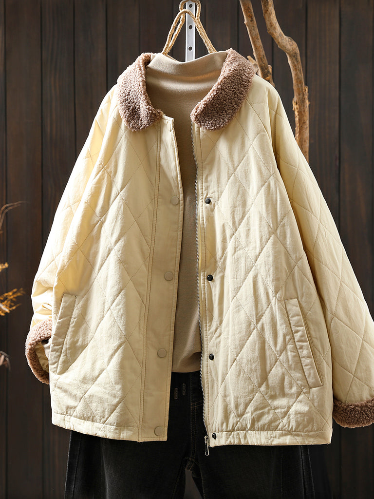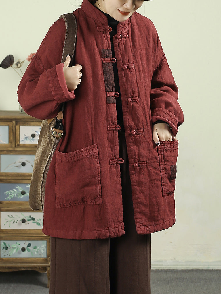 Women Winter Retro 100%Linen Fleece Spliced Padded Coat
