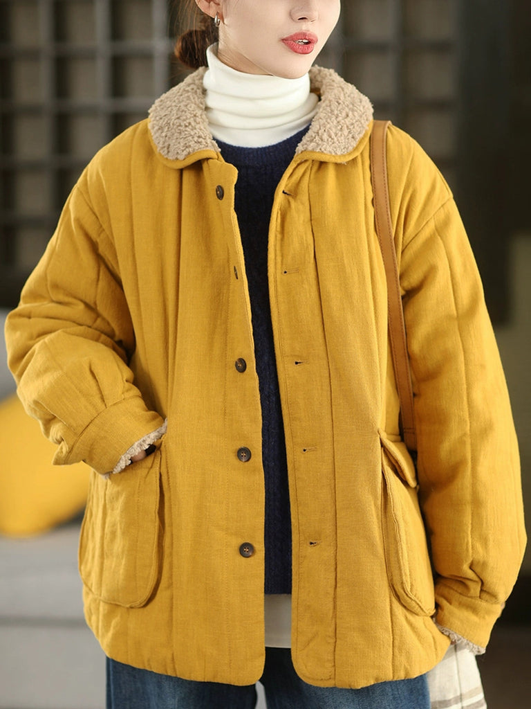 Women Winter Pure Color Padded Turn-down Collar Coat