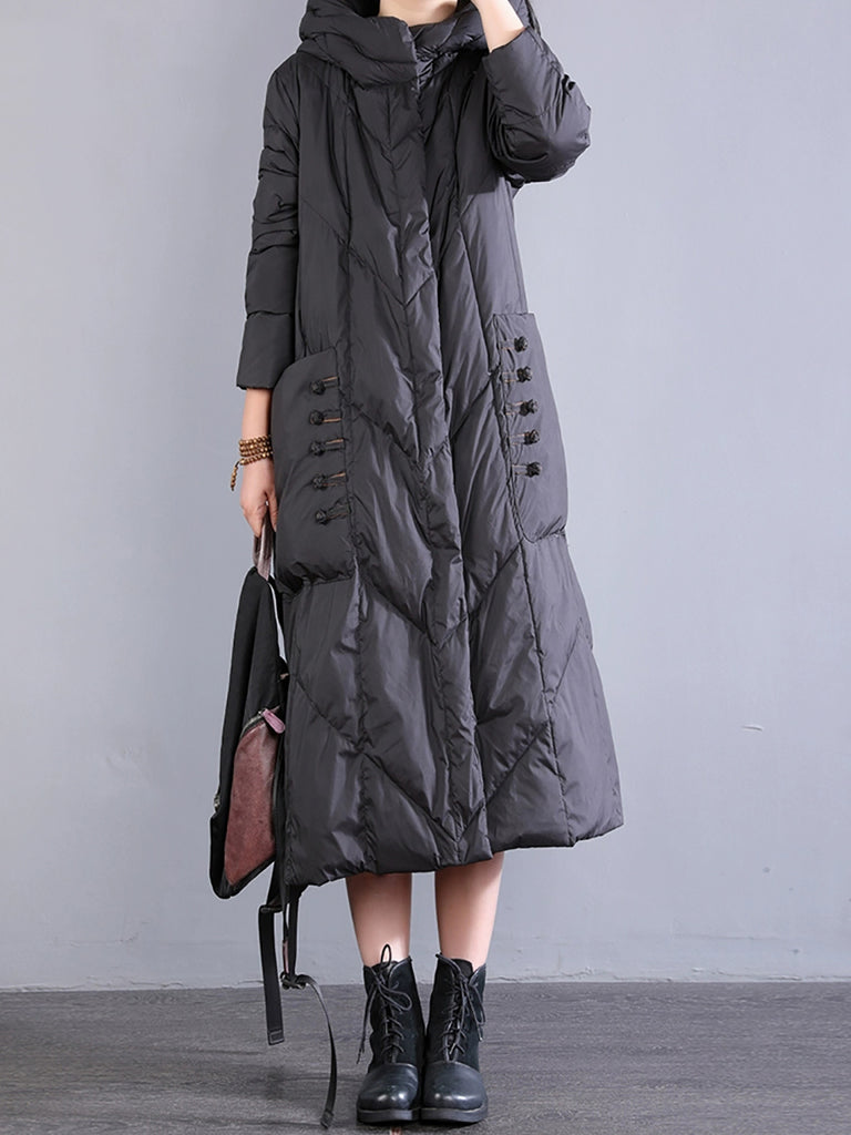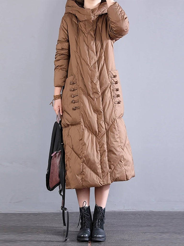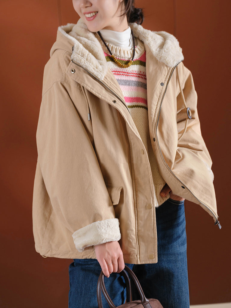 Women Winter Casual Pure Color Fleece-lined Hooded Coat