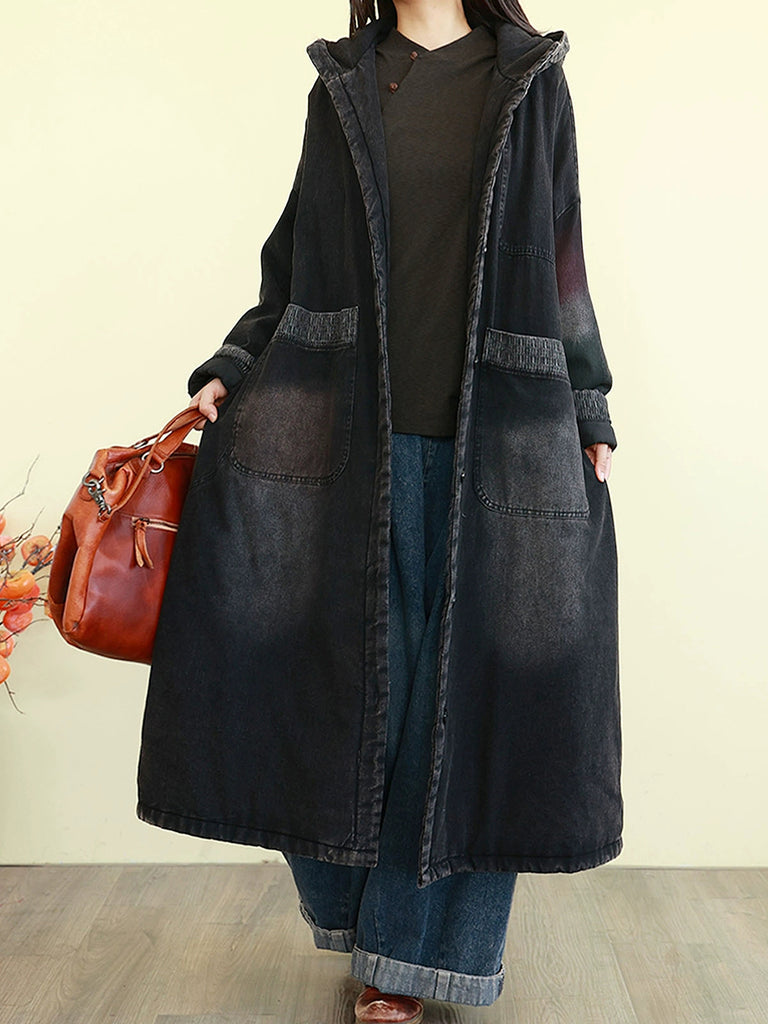 Women Winter Vintage Spliced Denim Padded Hooded Coat