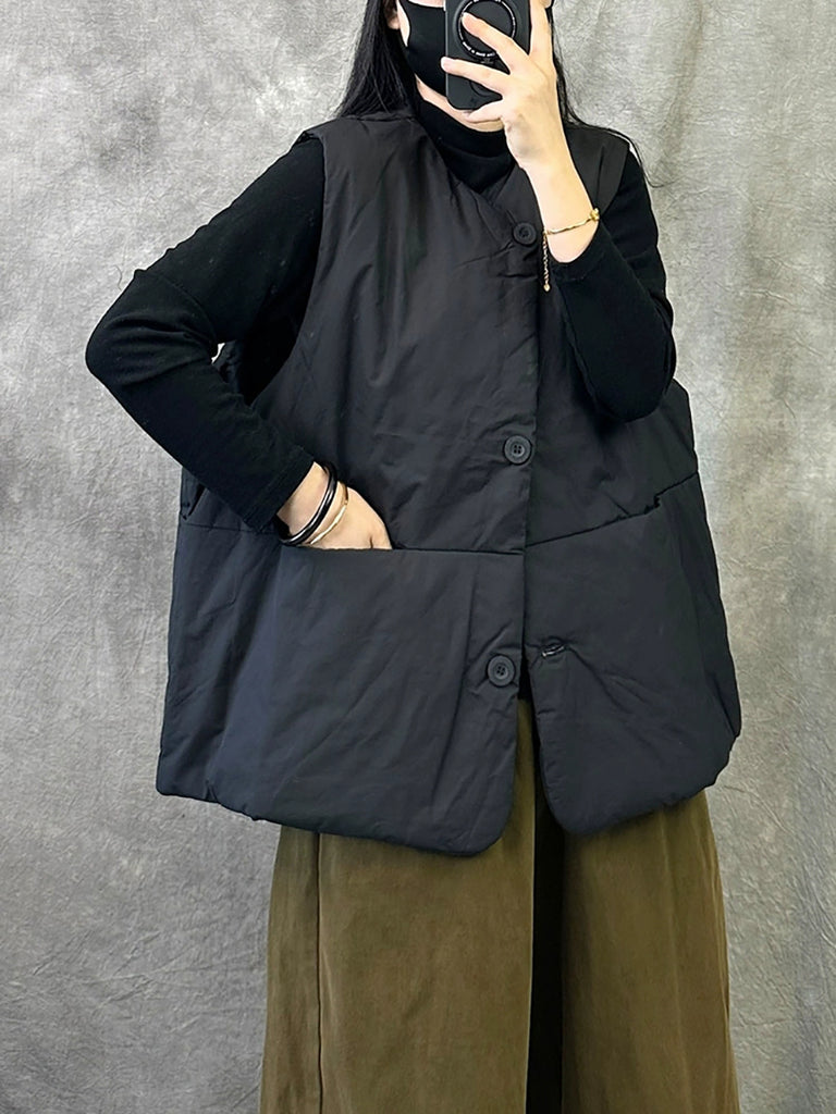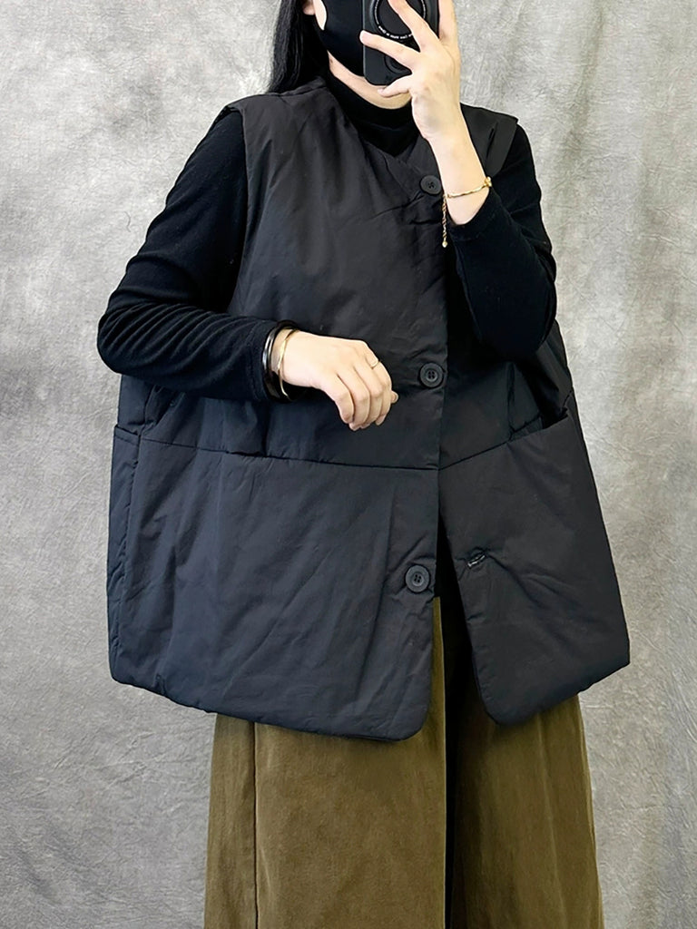Women Winter Casual Pure Color V-Neck Wool Vest