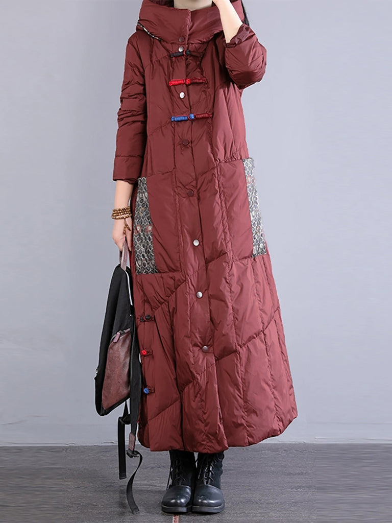 Women Winter Colorblock Turn-down Collar Padded Long Coat