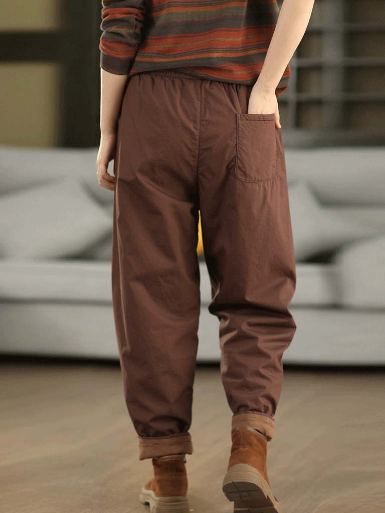 Women Winter Pure Color 100%Cotton Padded Harem Pants