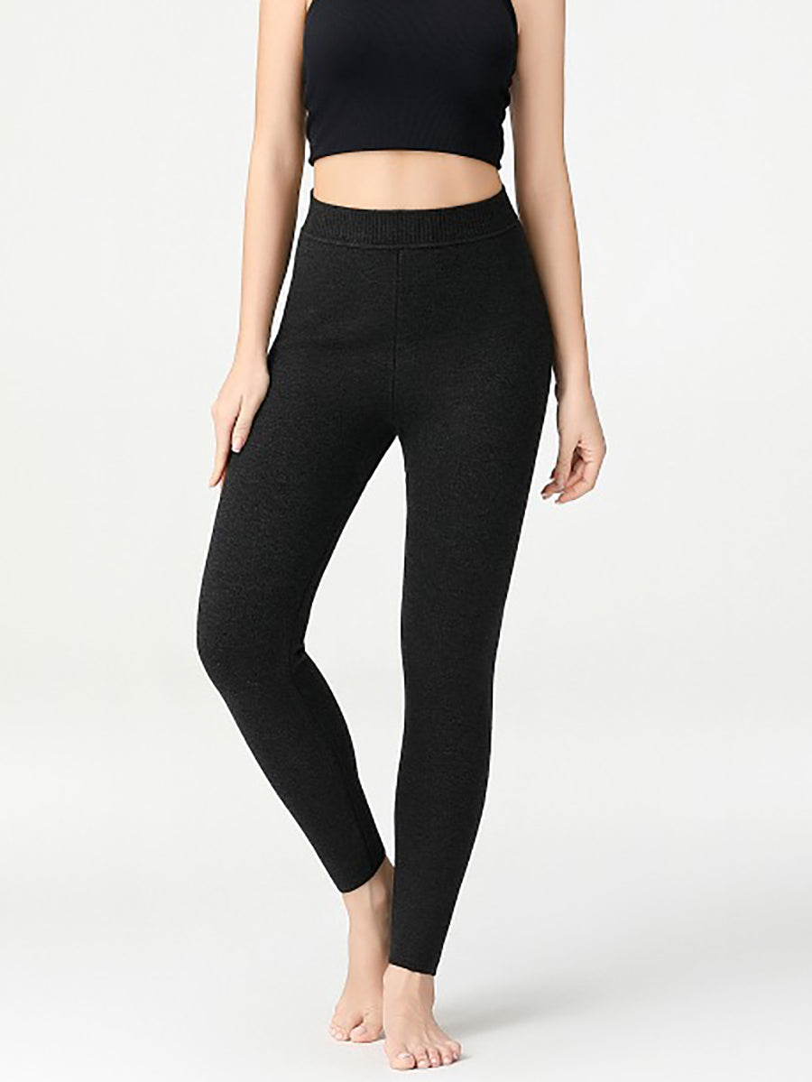 Winter Warm Pure Color Fleece-lined High Waist Leggings