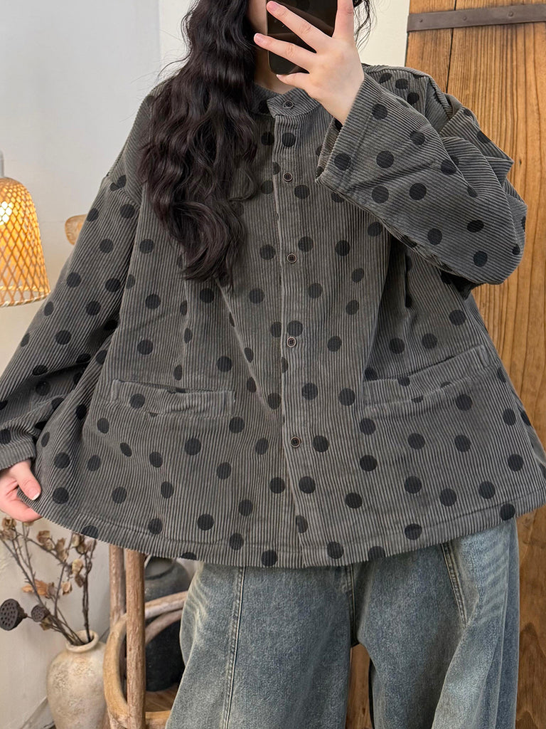 Plus Size Women Vintage Autumn Dot Stand Collar Corduroy Jacket