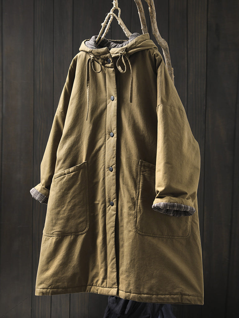 Plus Size Women Autumn Pure Color Long Cotton Hooded Coat