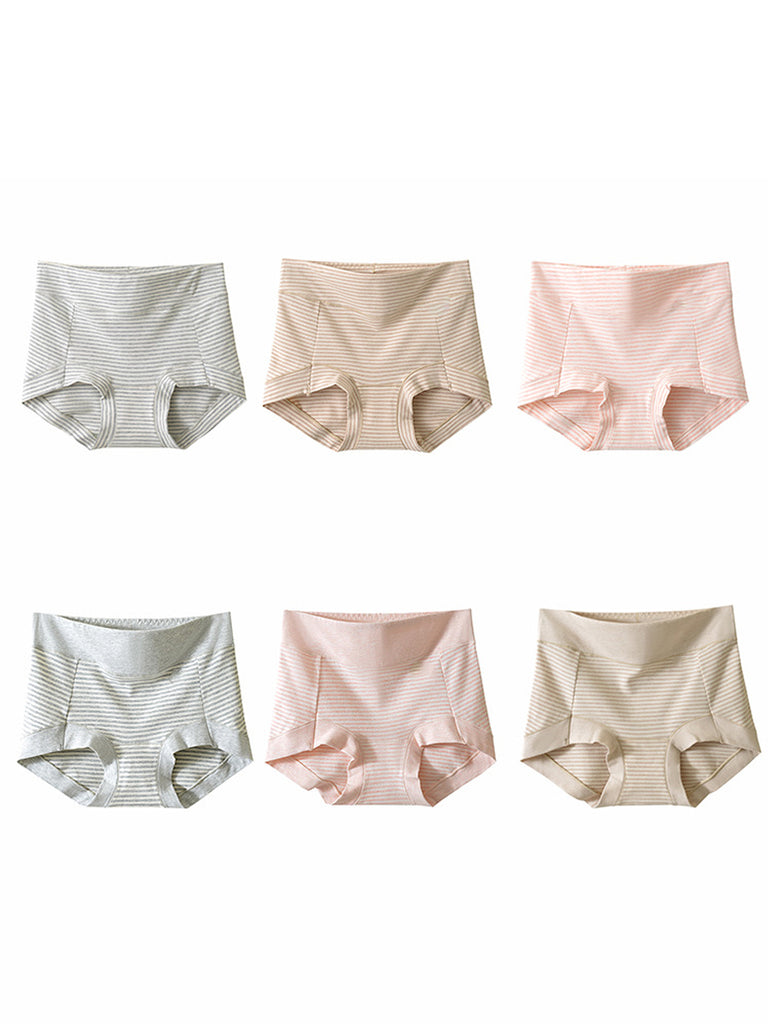 6 Pieces Women Casual Stripe High Waist Cotton Underwear
