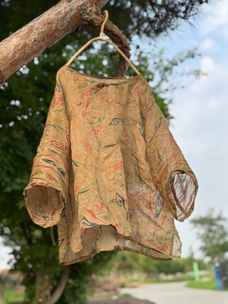 Women Summer Retro Tie-dye Linen V-Neck Shirt Coat