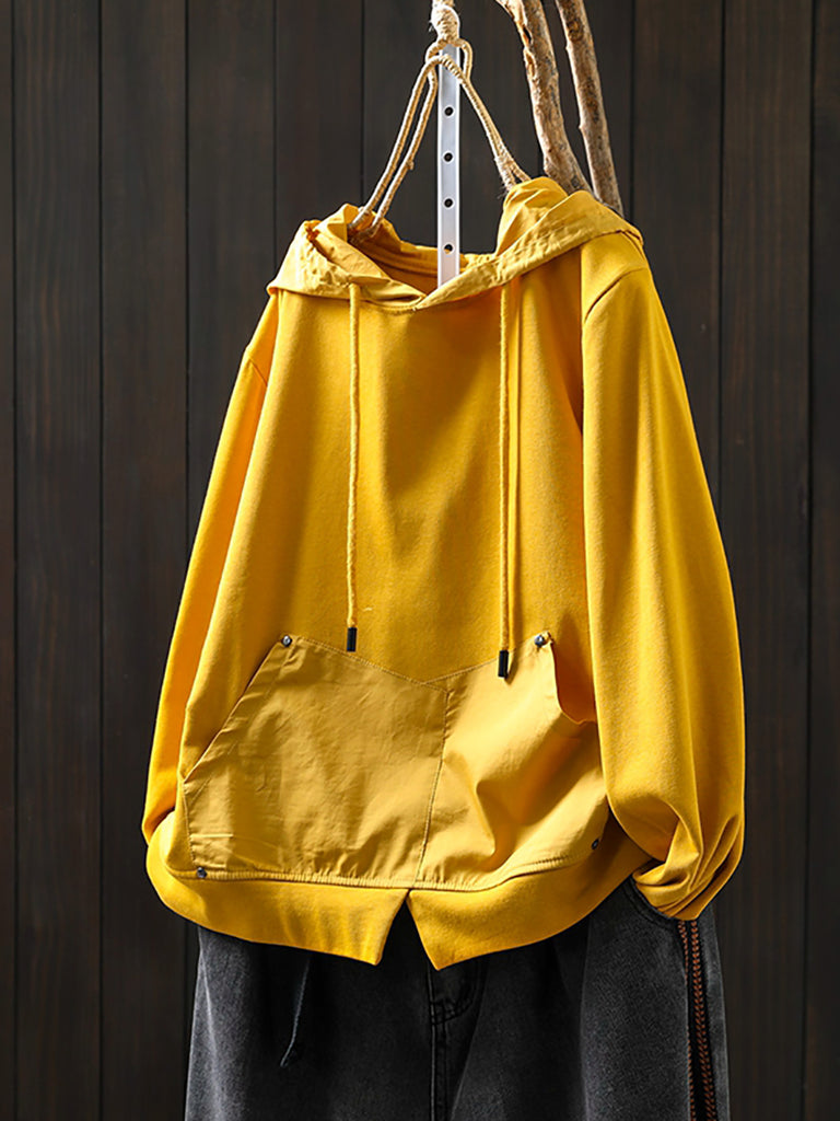 Women Retro Autumn Pure Color 100%Cotton Hoodie