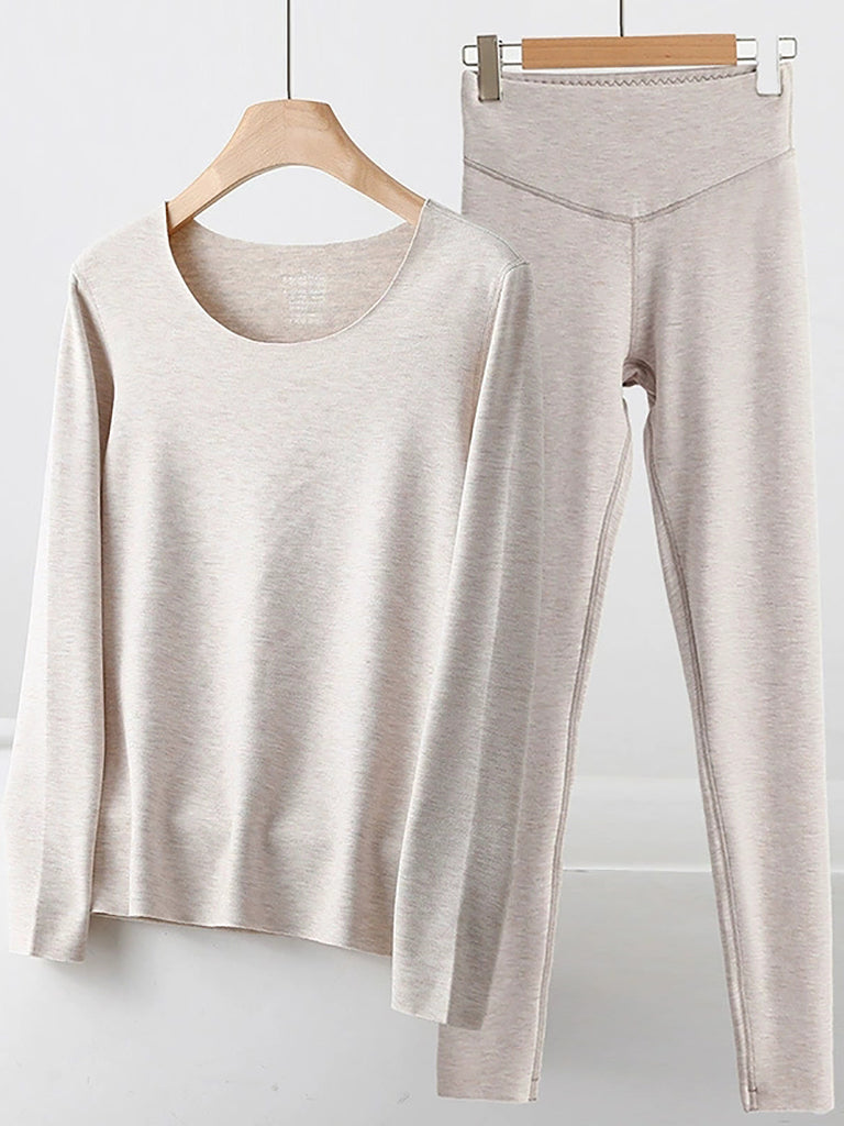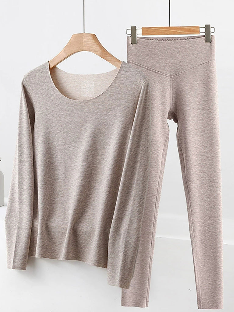 Women Autumn Casual Pure Color V-Neck Base Suits