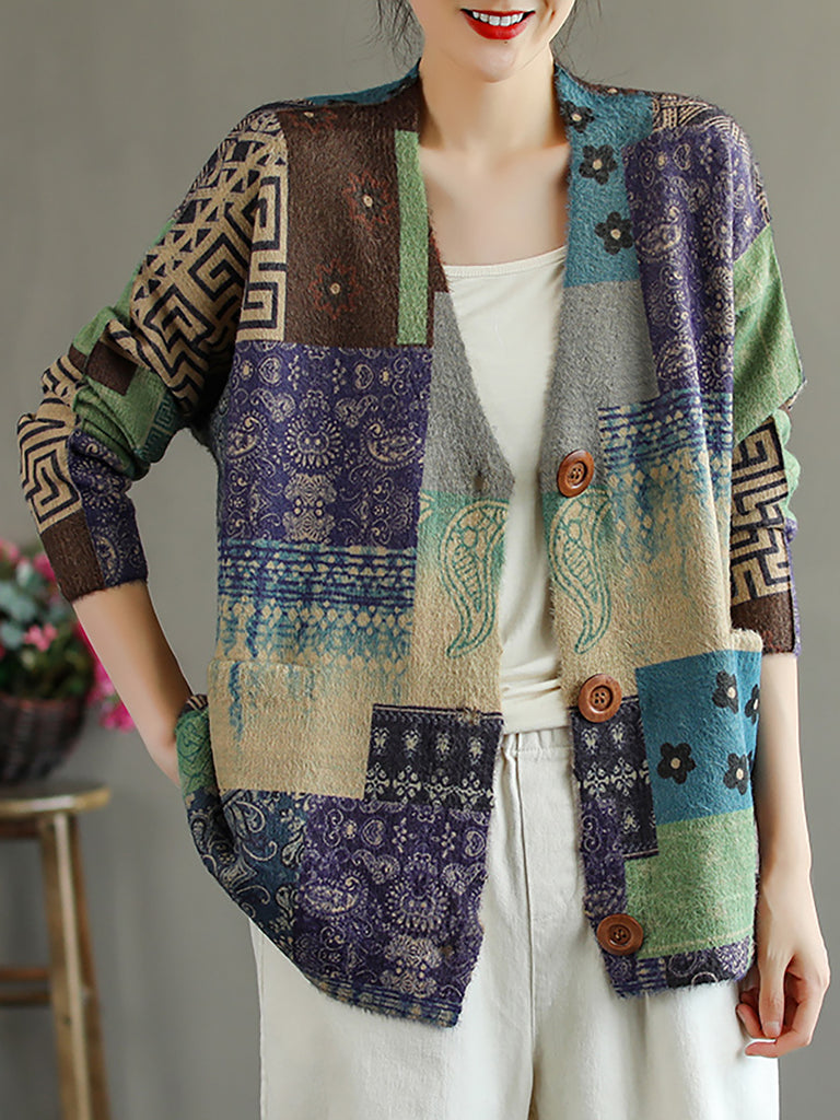 Plus Size Pocket Stitching V Neck Long Sleeve Sweater Coat