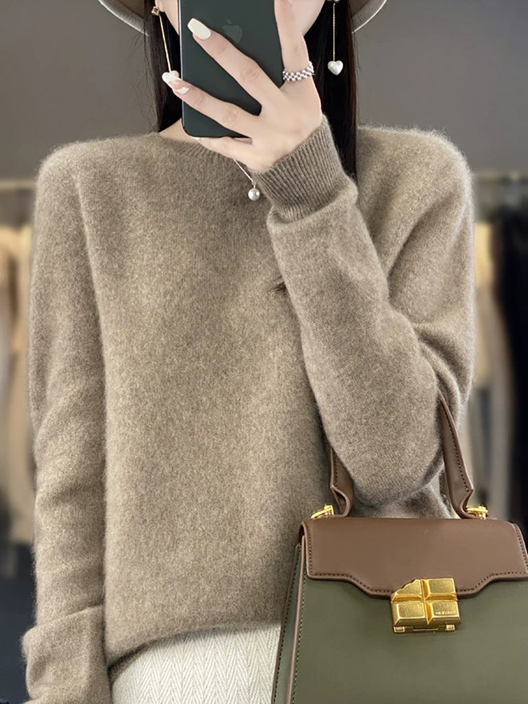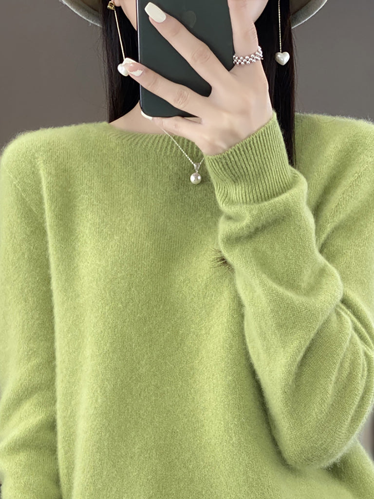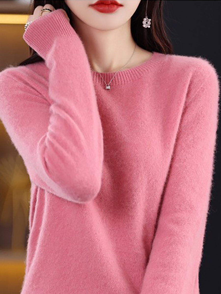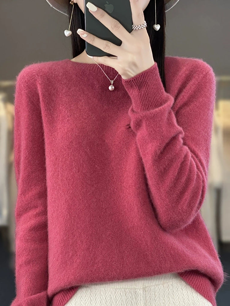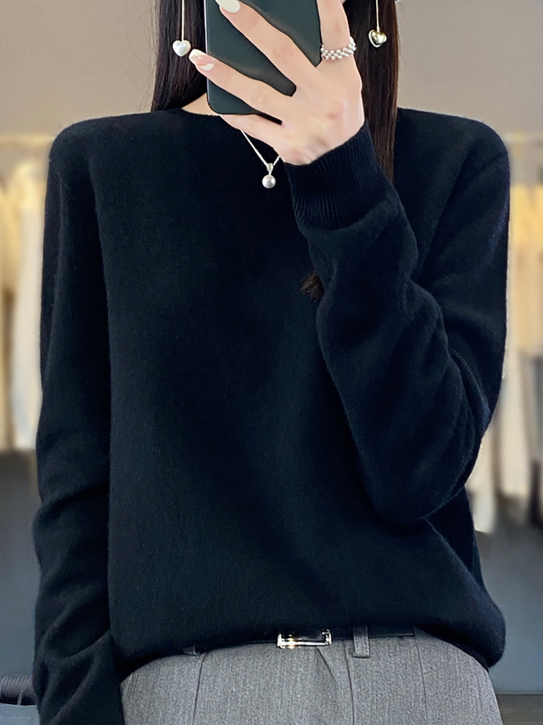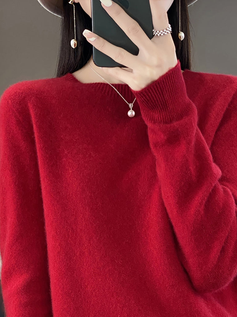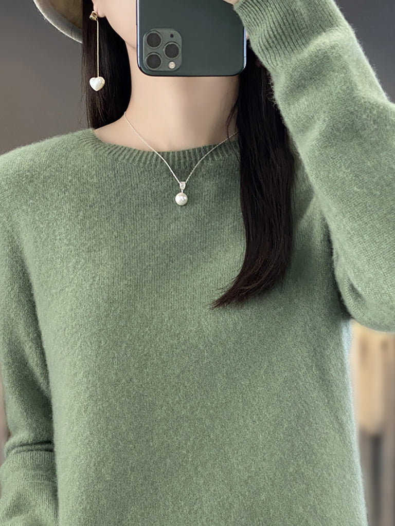 Women Winter Casual Pure Color O-Neck Wool Sweater