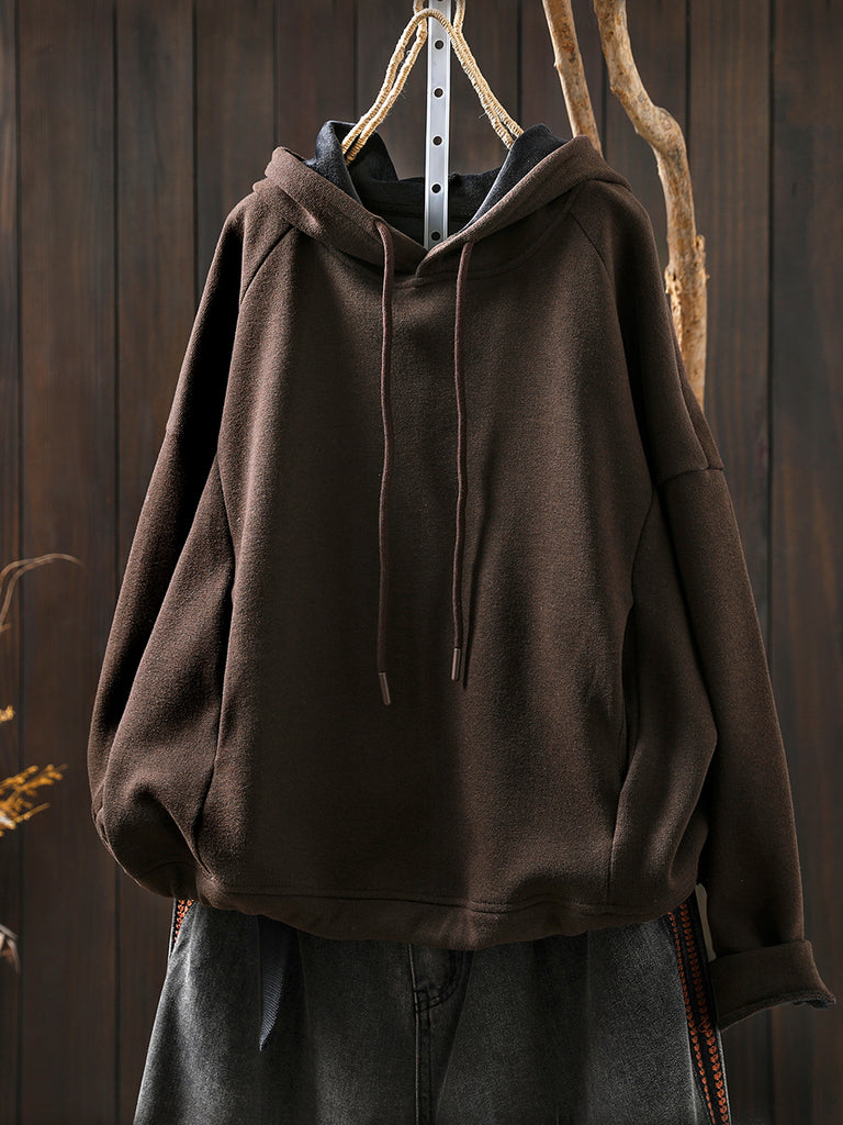 Women Winter Casual Pure Color Fleece-lined Hoodie