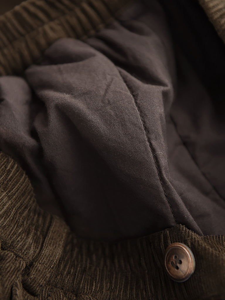Women Winter Retro Corduroy Padded Wide-leg Pants