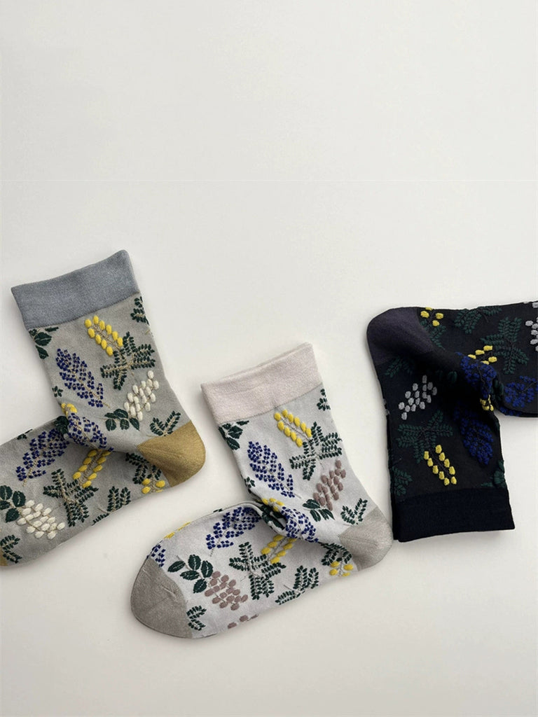 3 Pairs Women Artsy Summer Flower Thin Socks