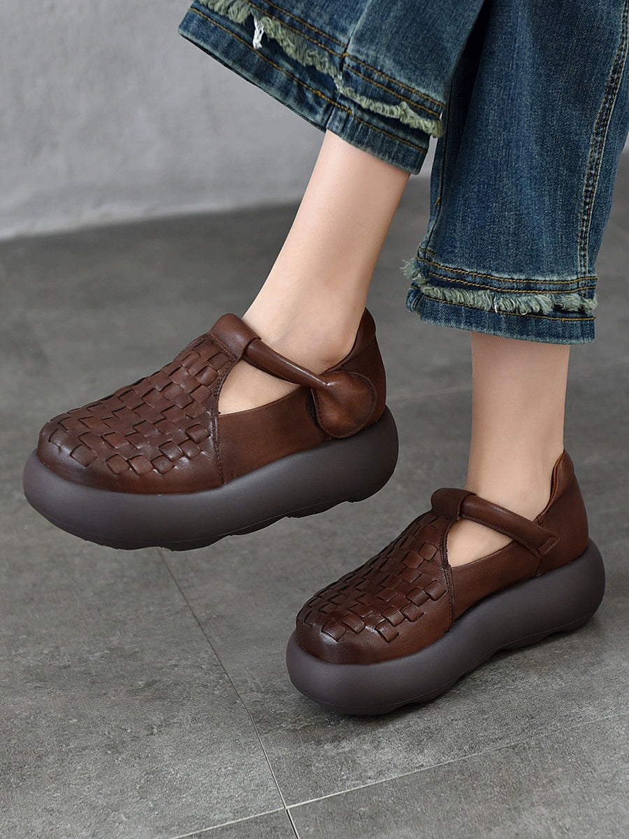 Women Summer Genuine Leather Weave Platform Shoes