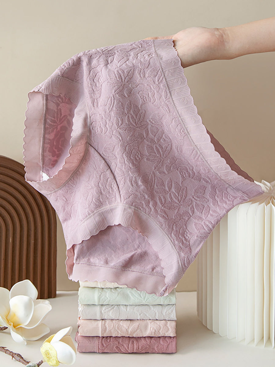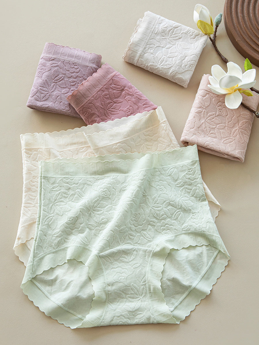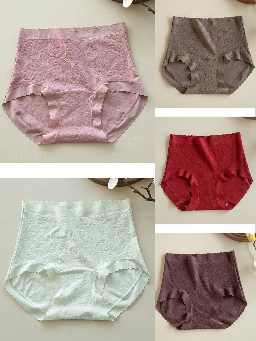 5 Pieces Women Artsy Floral High Waist Underwear