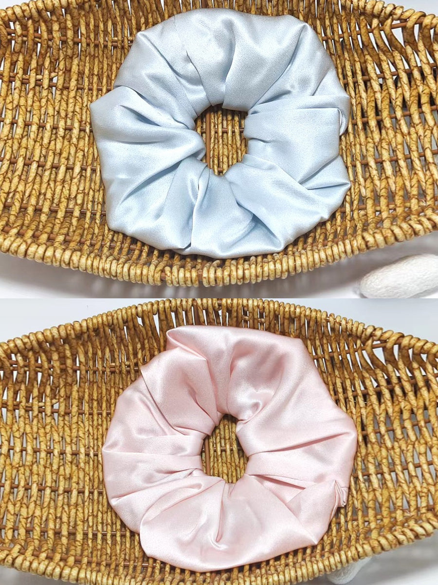2 Pieces Handmade Pure Color Pleated Silk Hair Rope