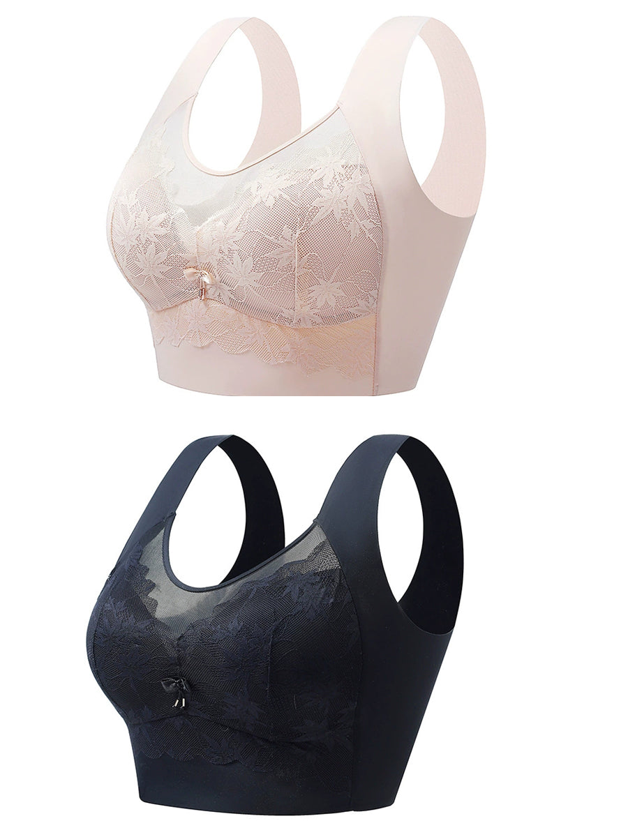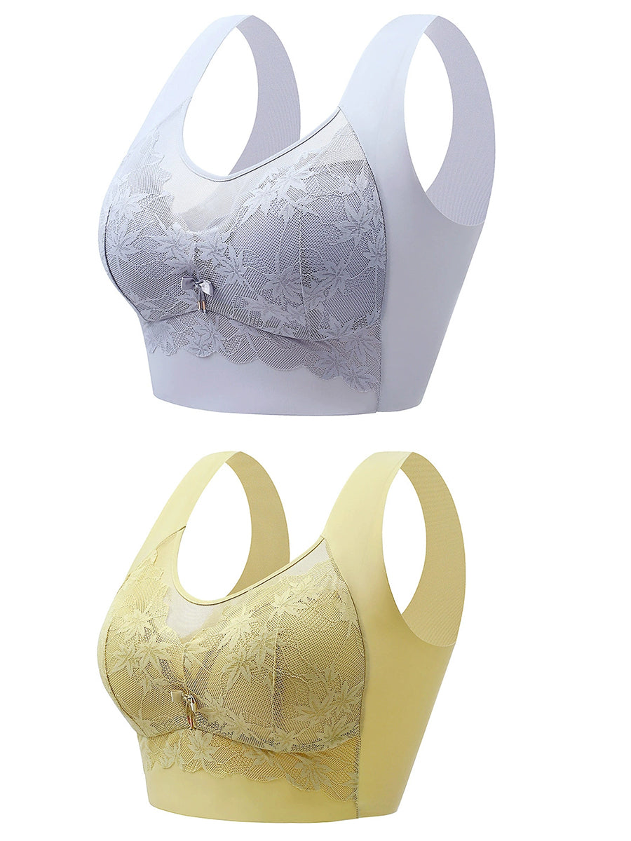 2 Pieces Women Artsy Lace One-piece Wireless Bra