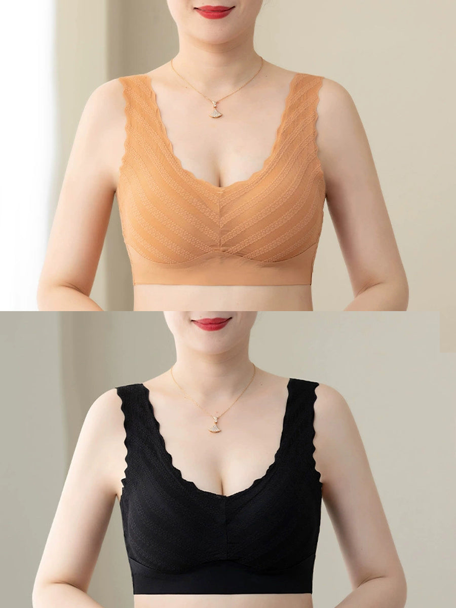 2 Pieces Women Artsy Pure Color One-piece Wireless Bra