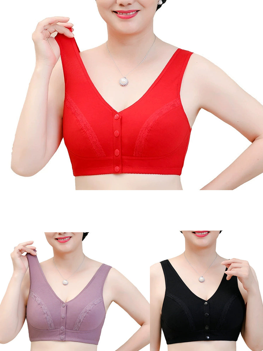 3 Pieces Women Artsy Pure Color Front-buckle Wireless Bra