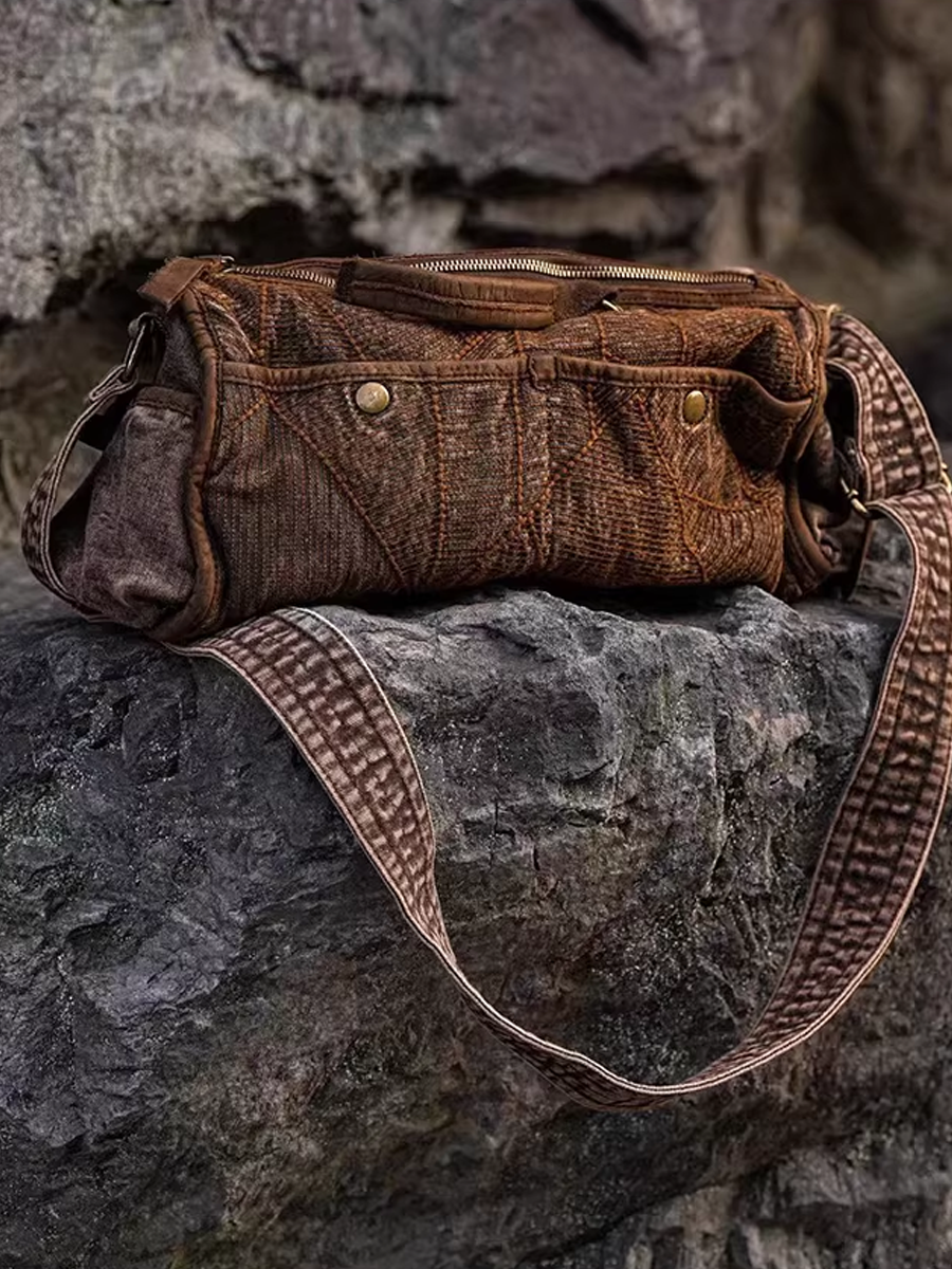 Vintage Emboridery Denim Leather Shoulder Bag