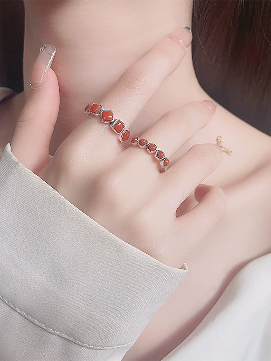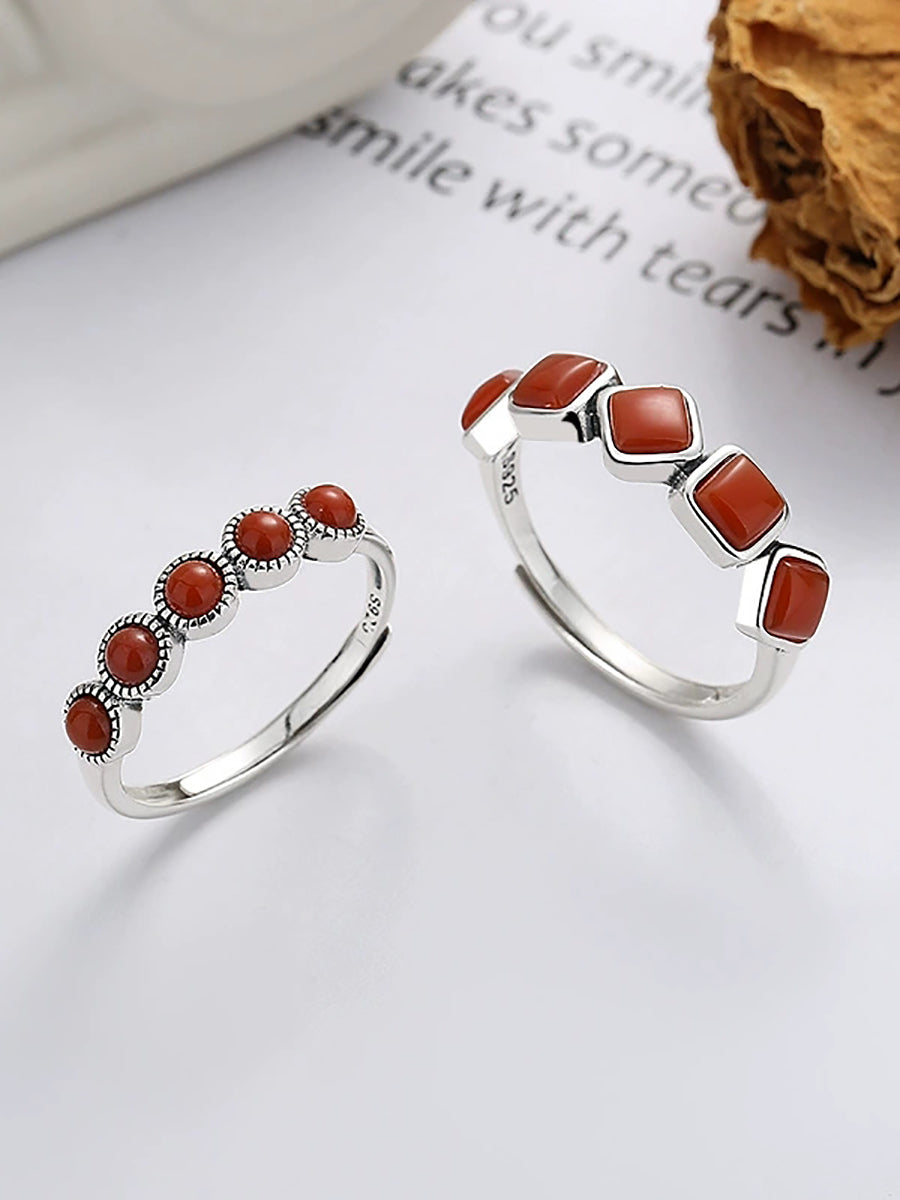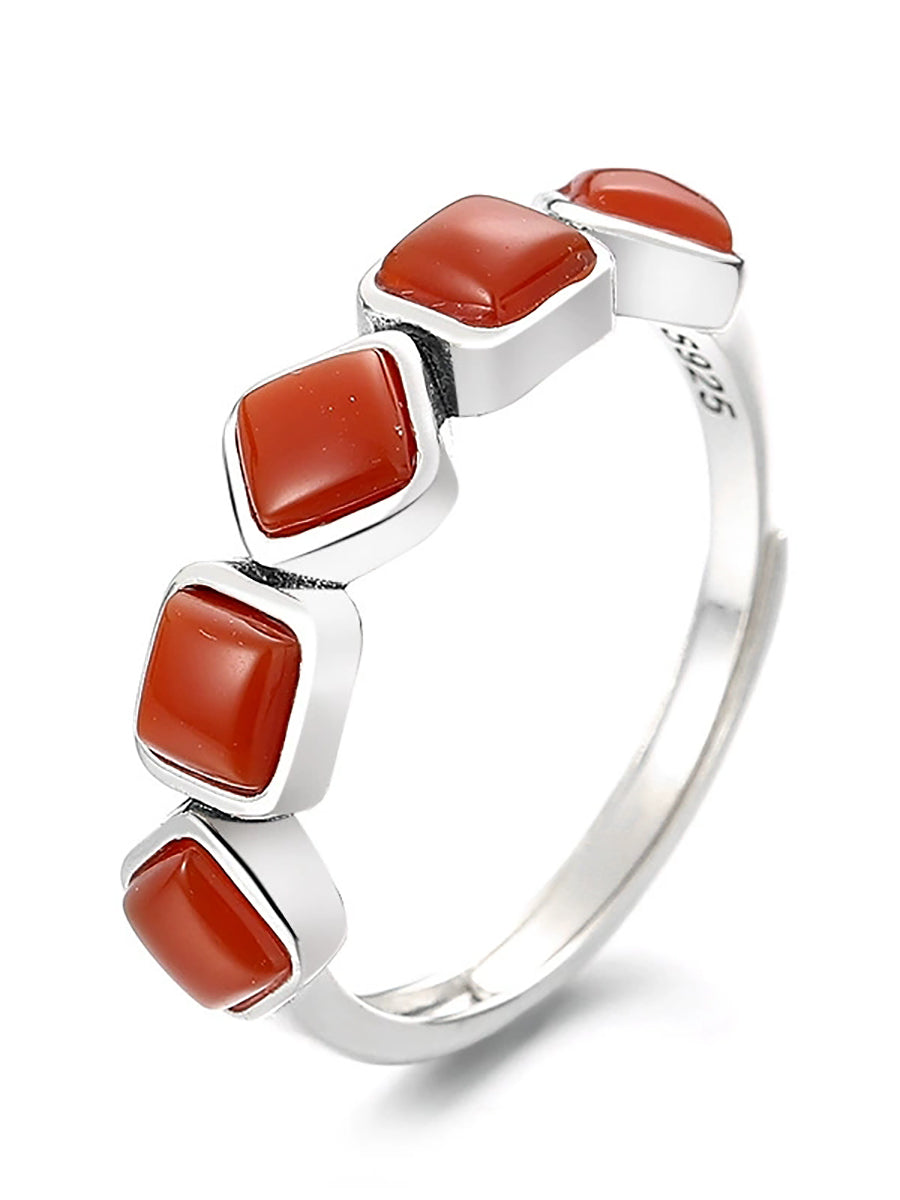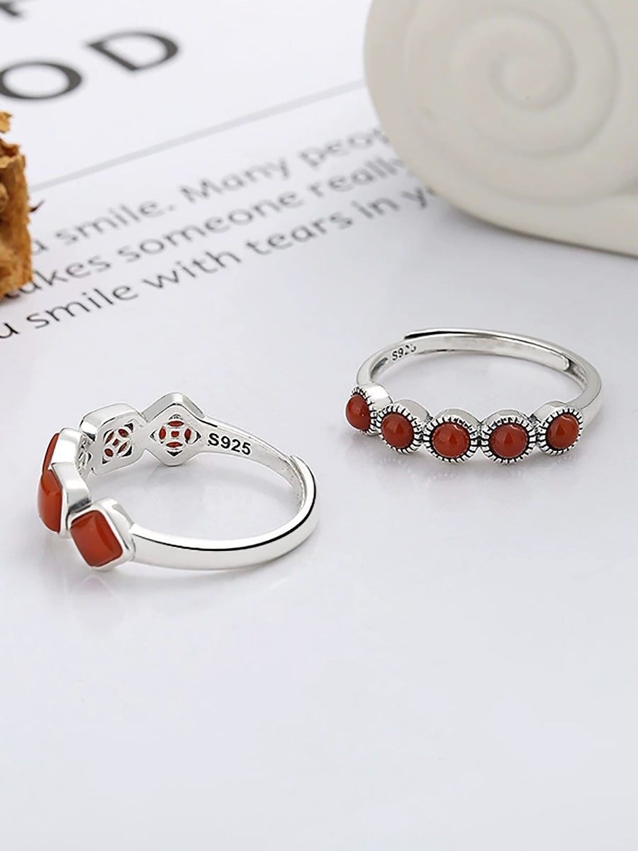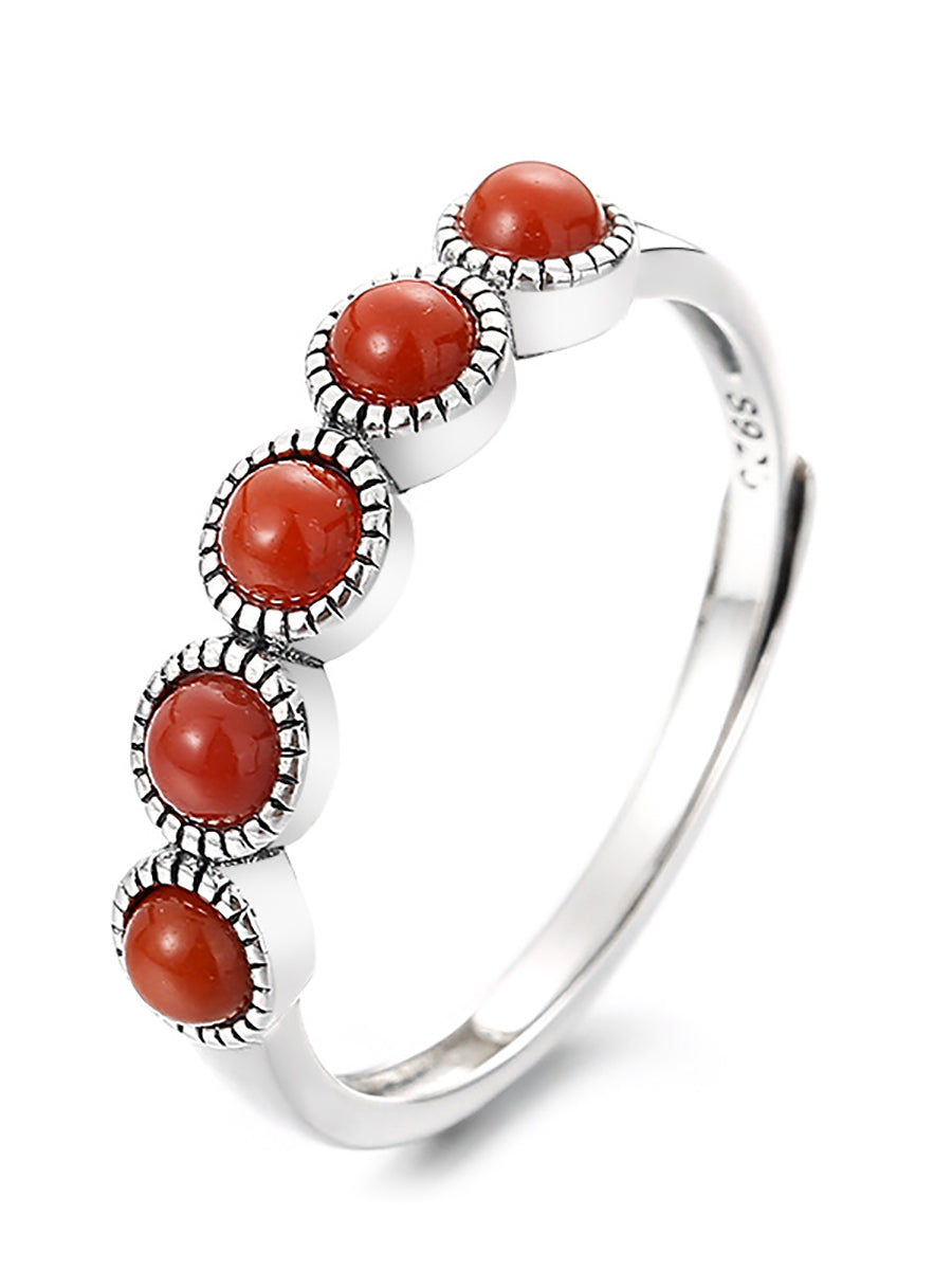 Vintage S925Silver Red Agate Adjustable Ring