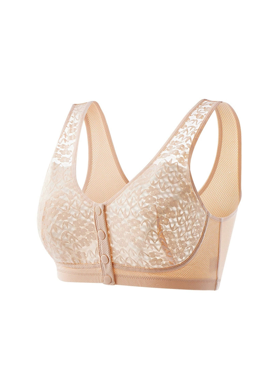 Women Artsy Flower Jacquard Front-buckle Wireless Bra