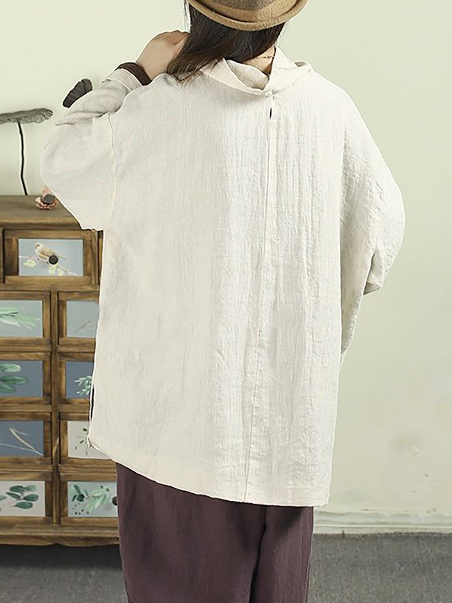Women Artsy Pure Color Turtleneck 100%Linen Hoodie