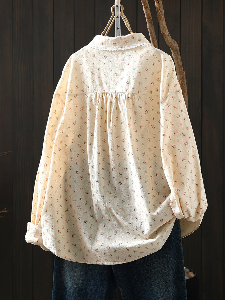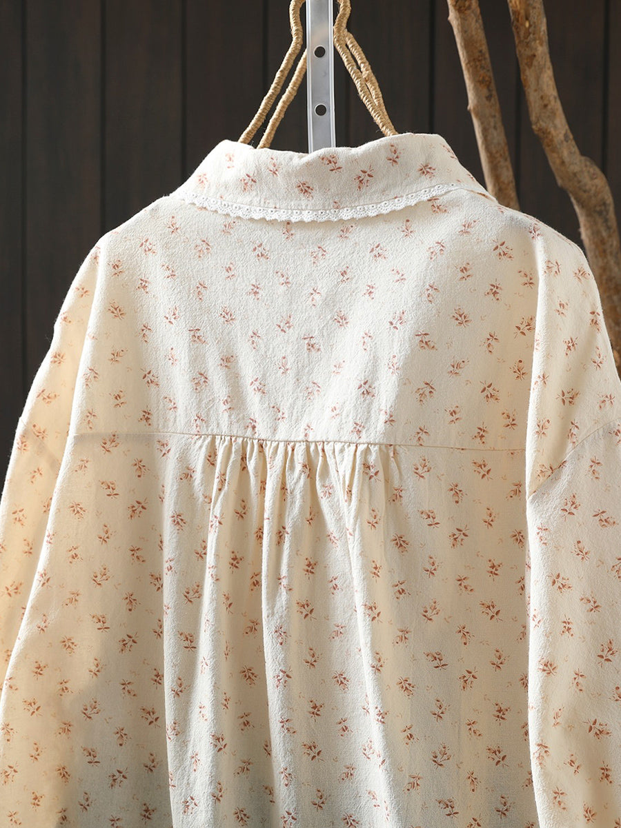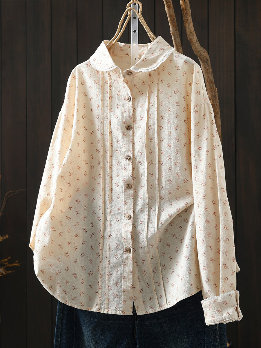 Women Artsy Spring Floral 100%Cotton Shirred Shirt