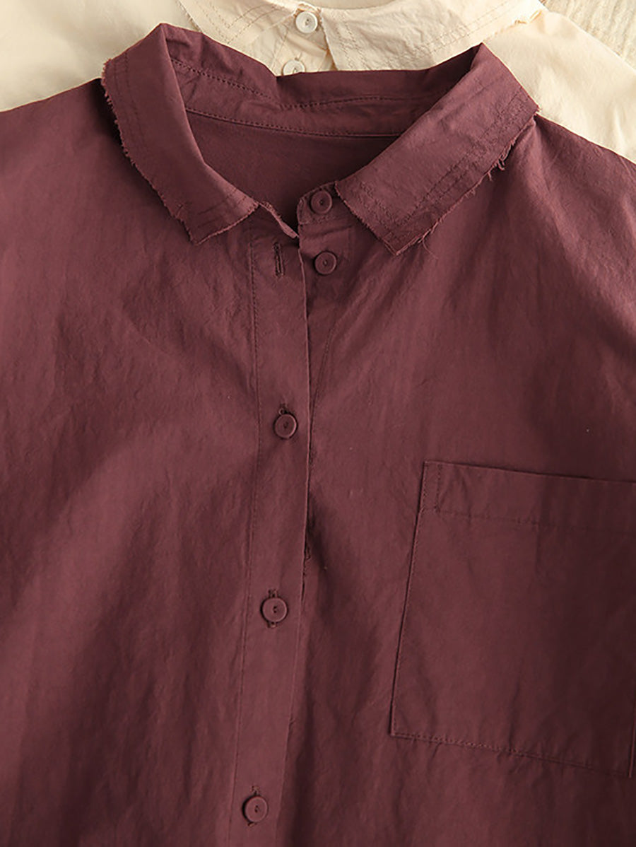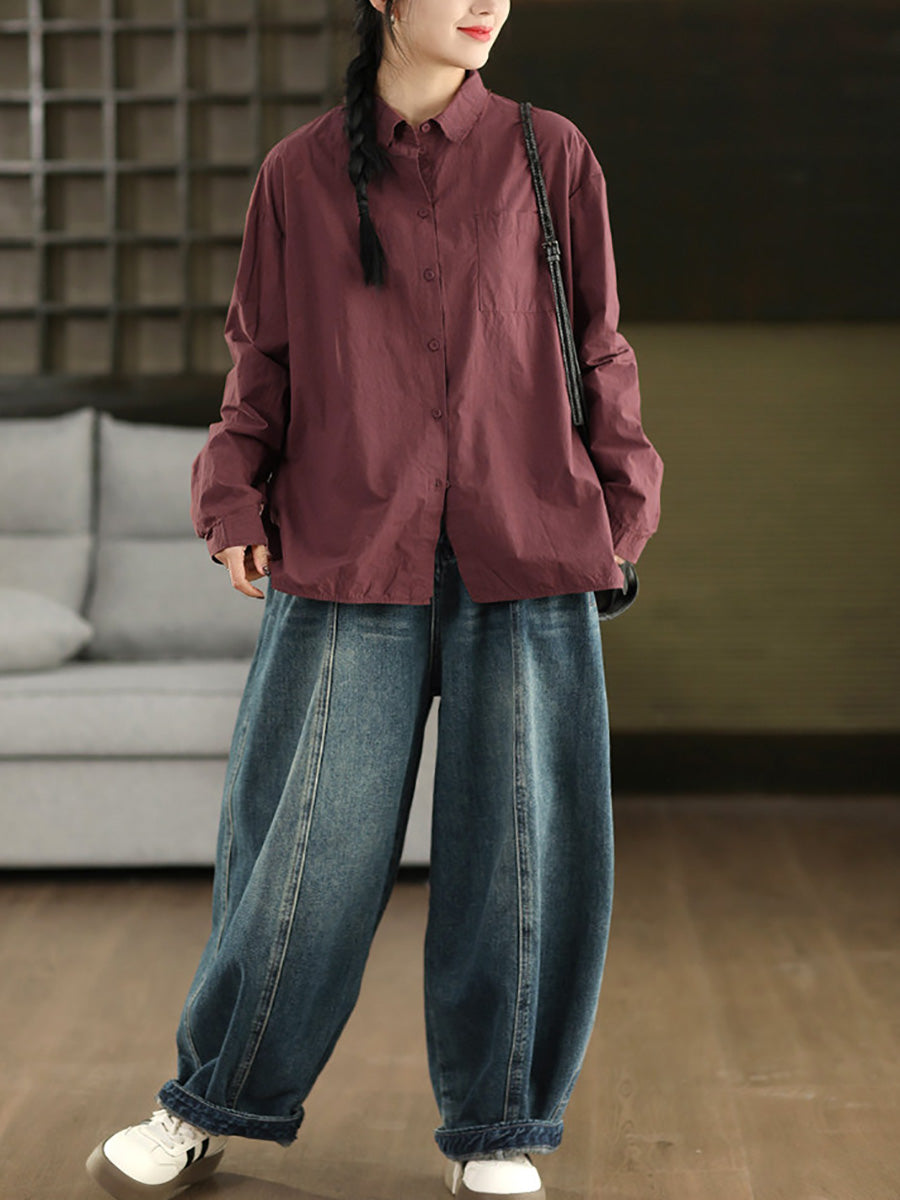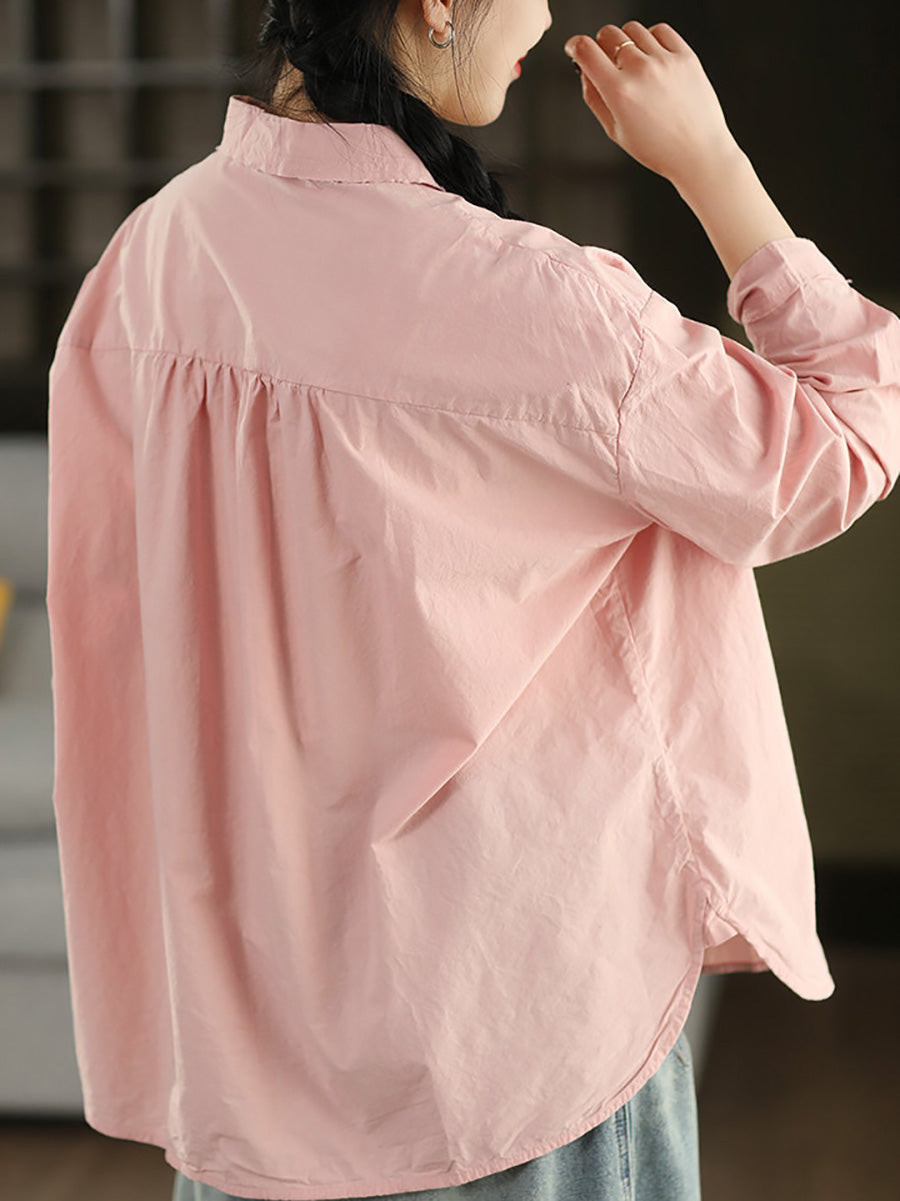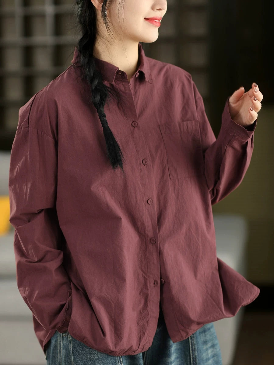 Women Artsy Spring Pure Color 100%Cotton Shirt
