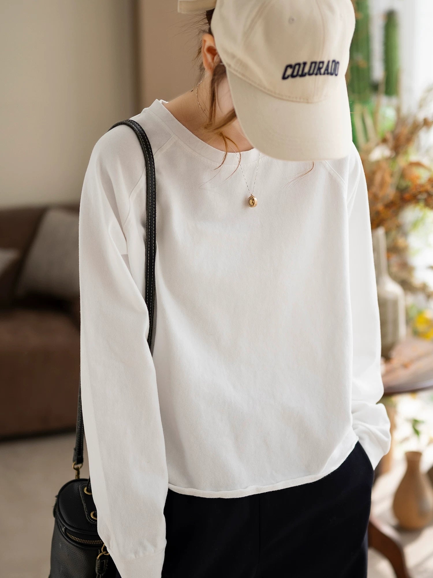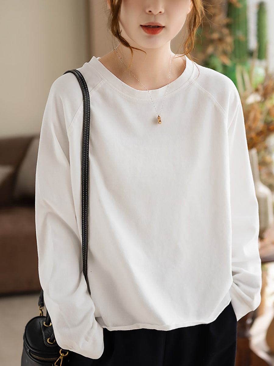 Women Artsy Spring Pure Color O-Neck Cotton Blouse