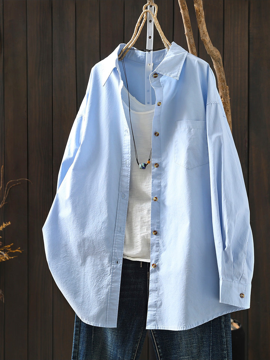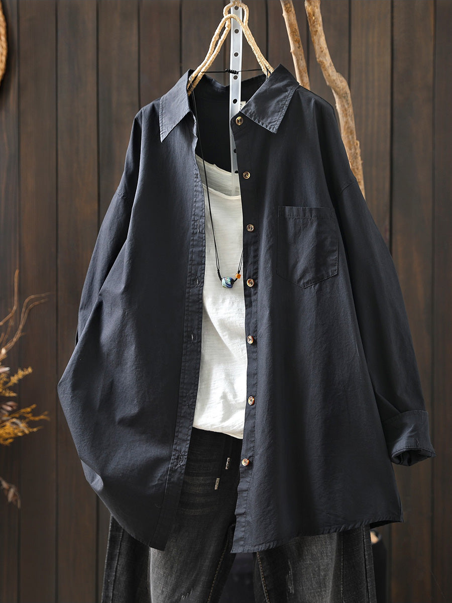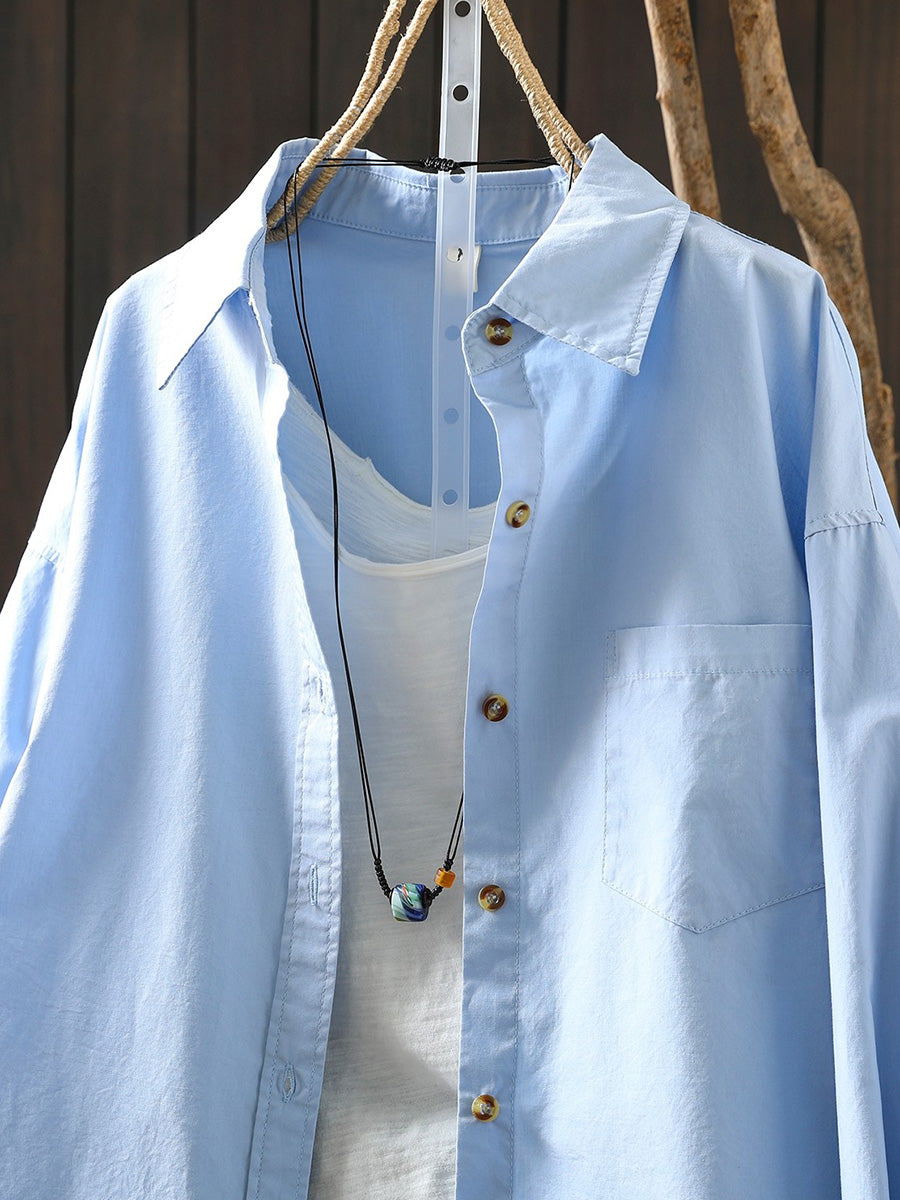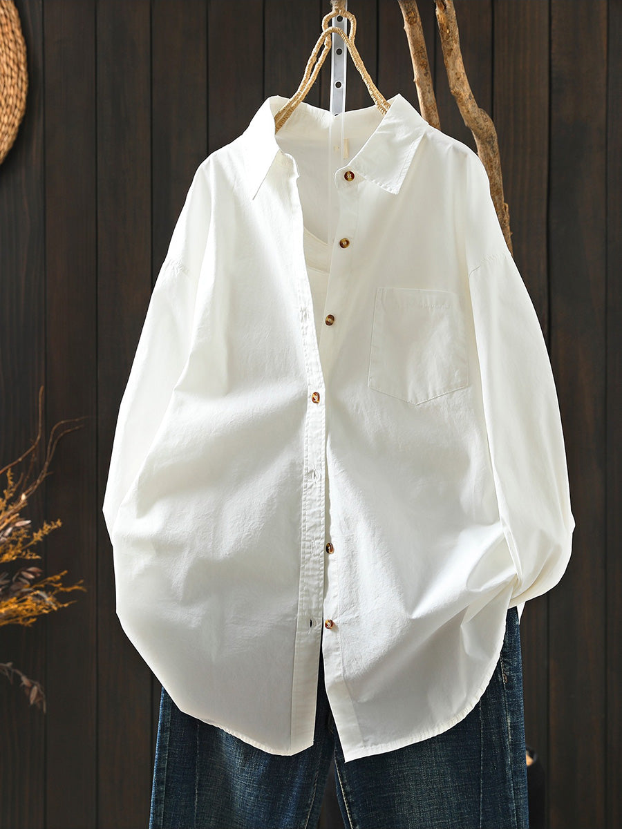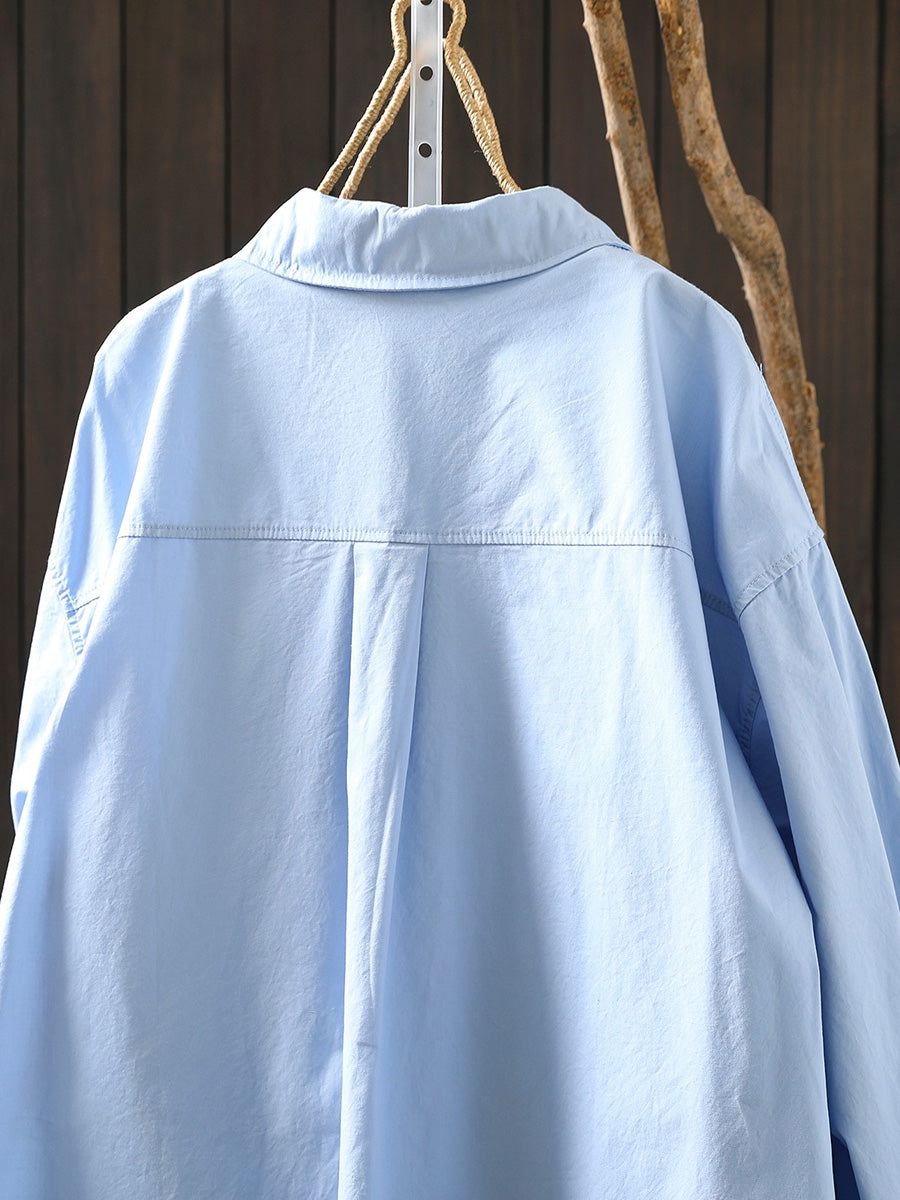 Women Artsy Spring Turn-down Collar 100%Cotton Shirt