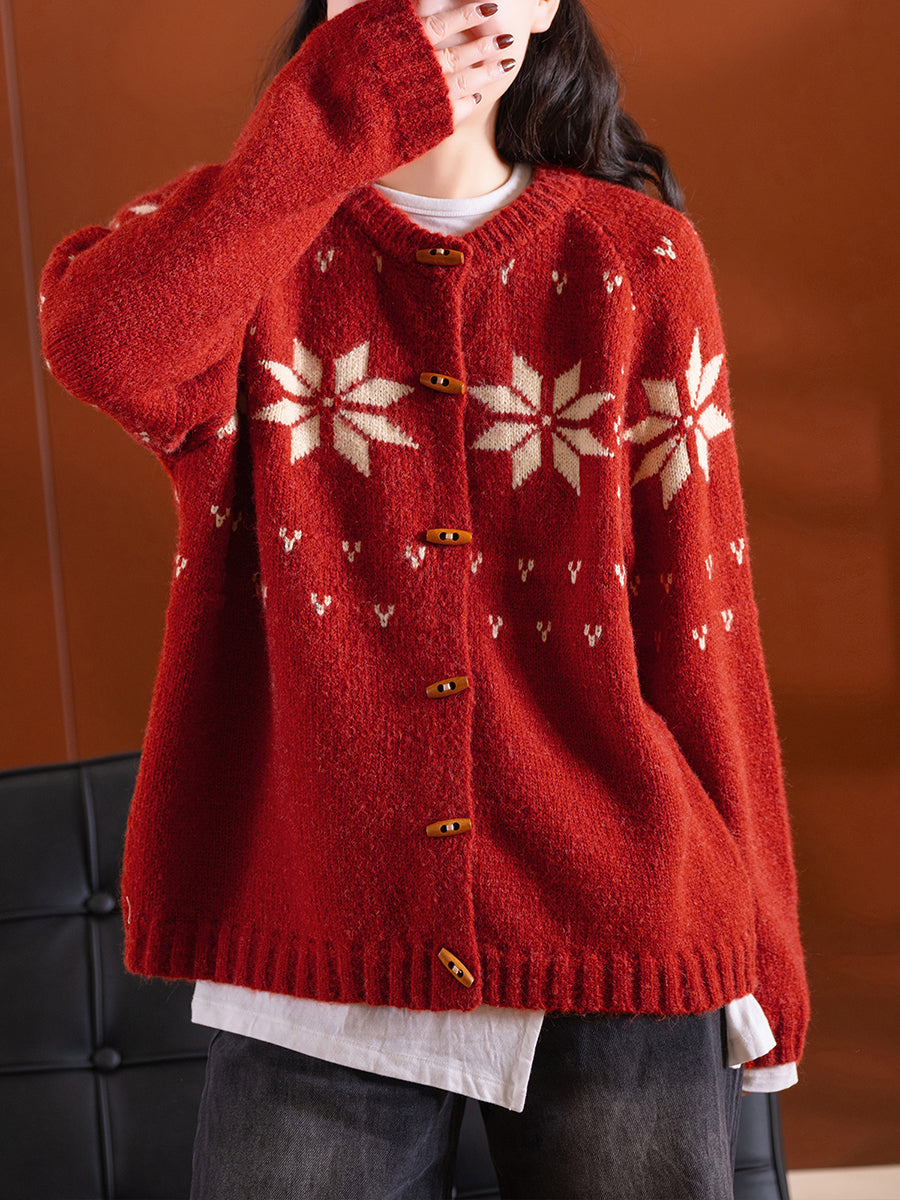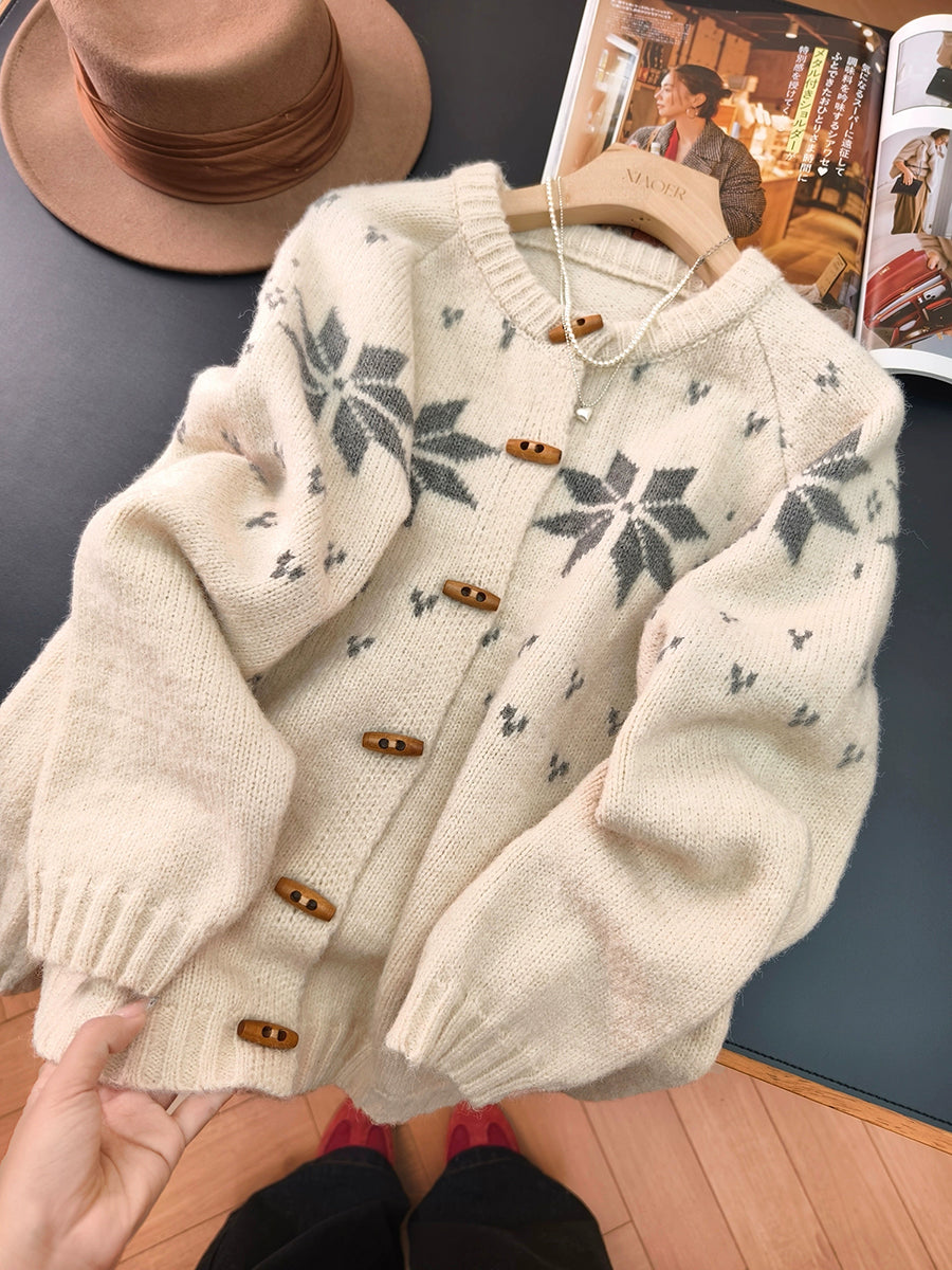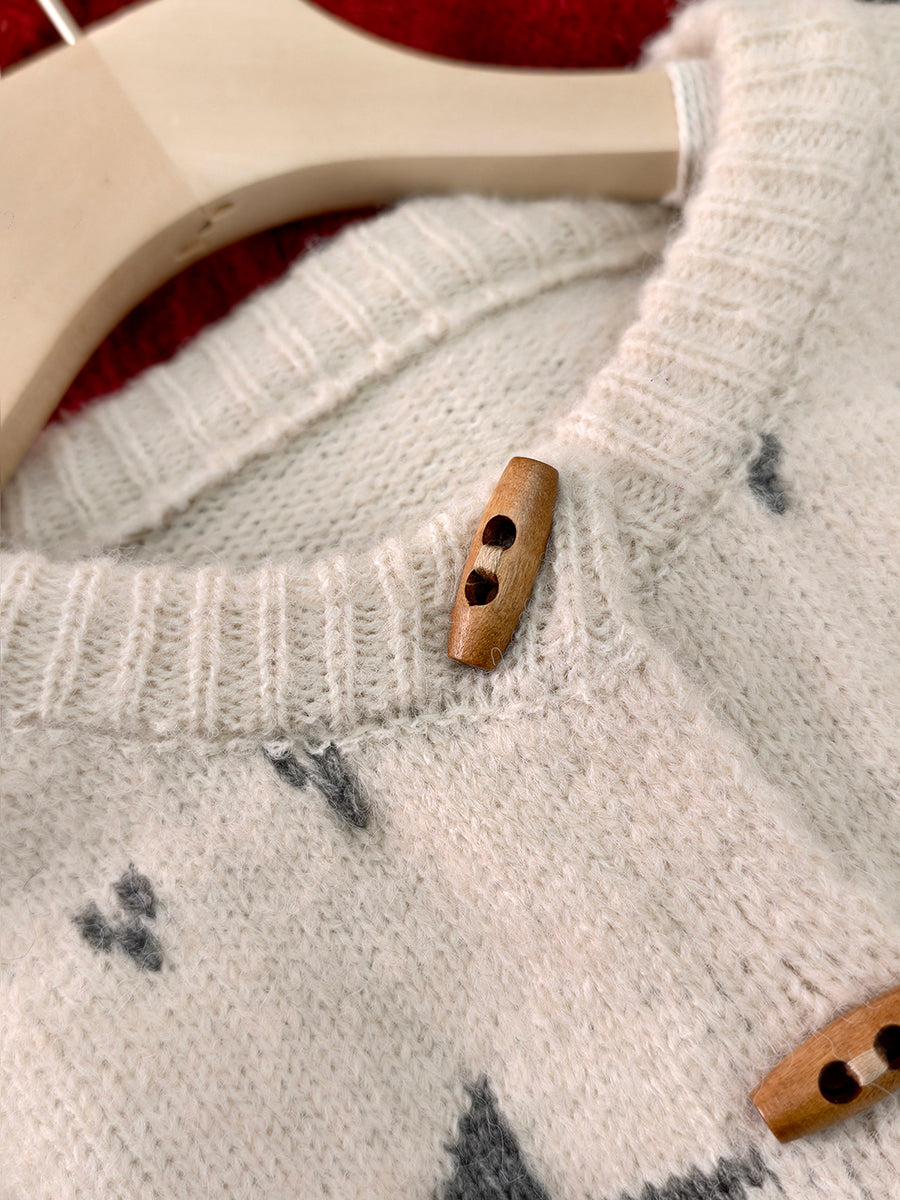 Women Autumn Artsy Flower Knitted O-Neck Sweater