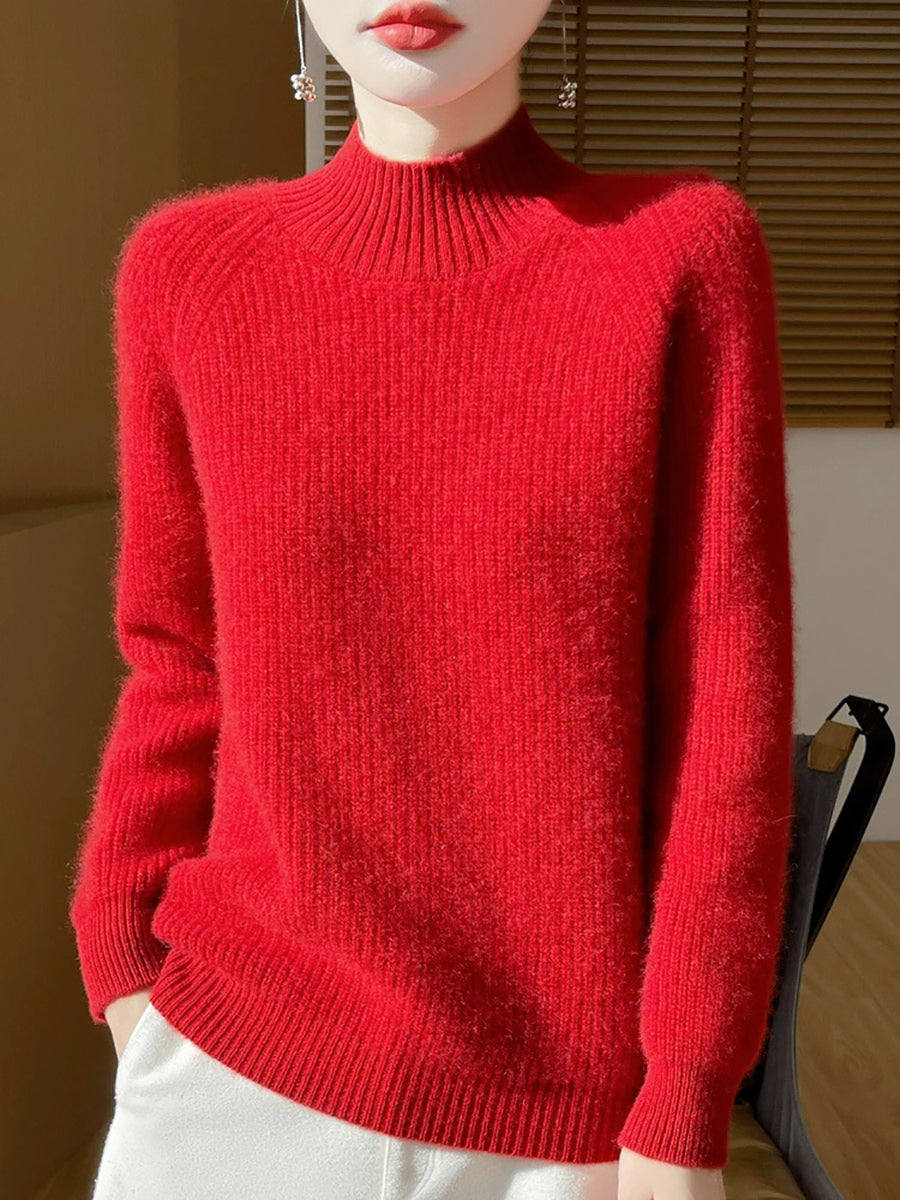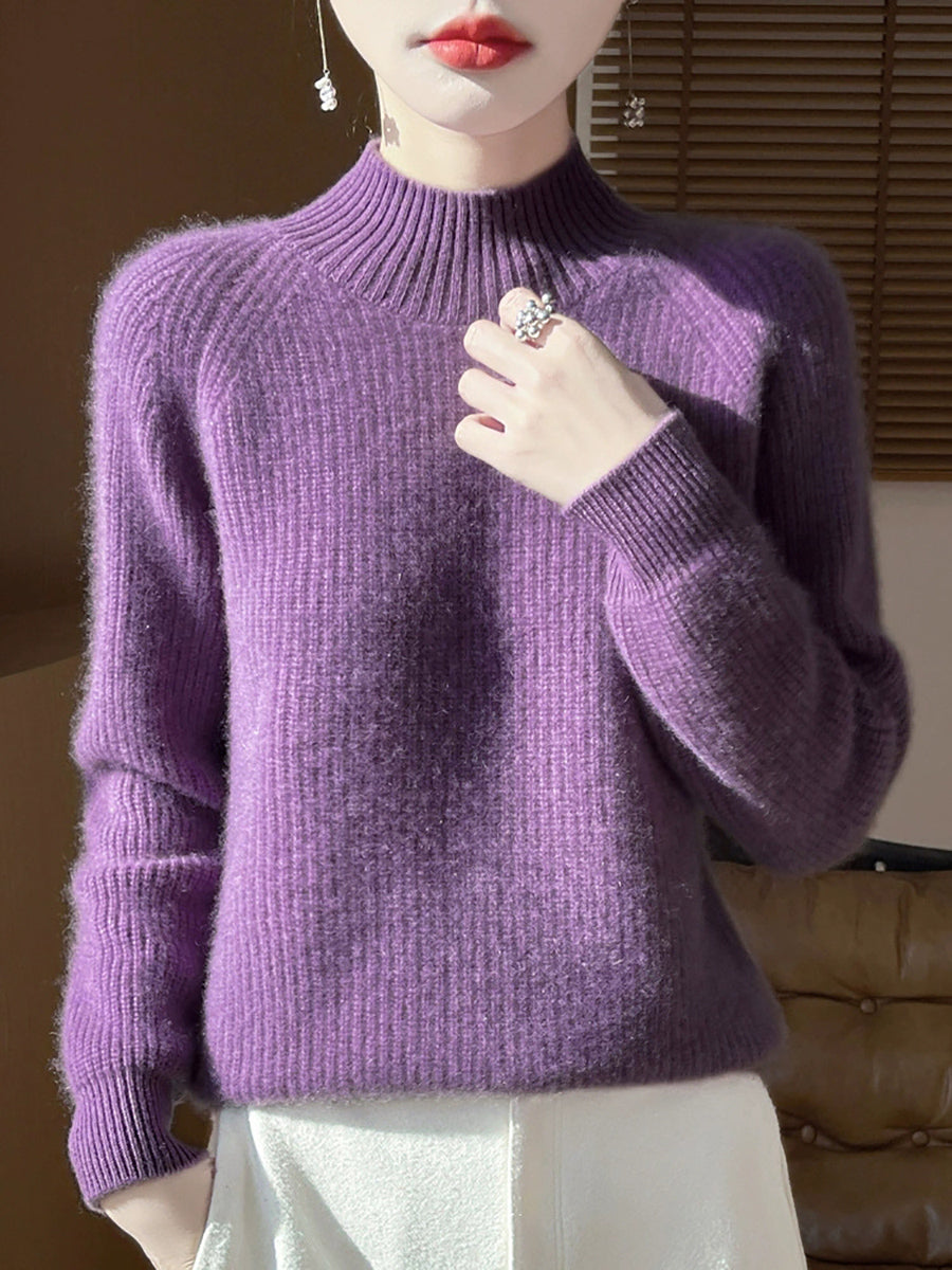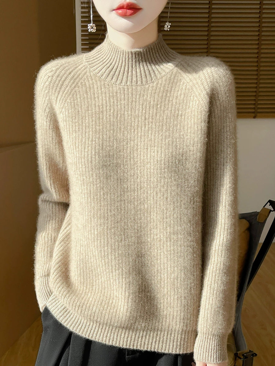 Women Autumn Artsy Pure Color Wool Half-Turtleneck Sweater
