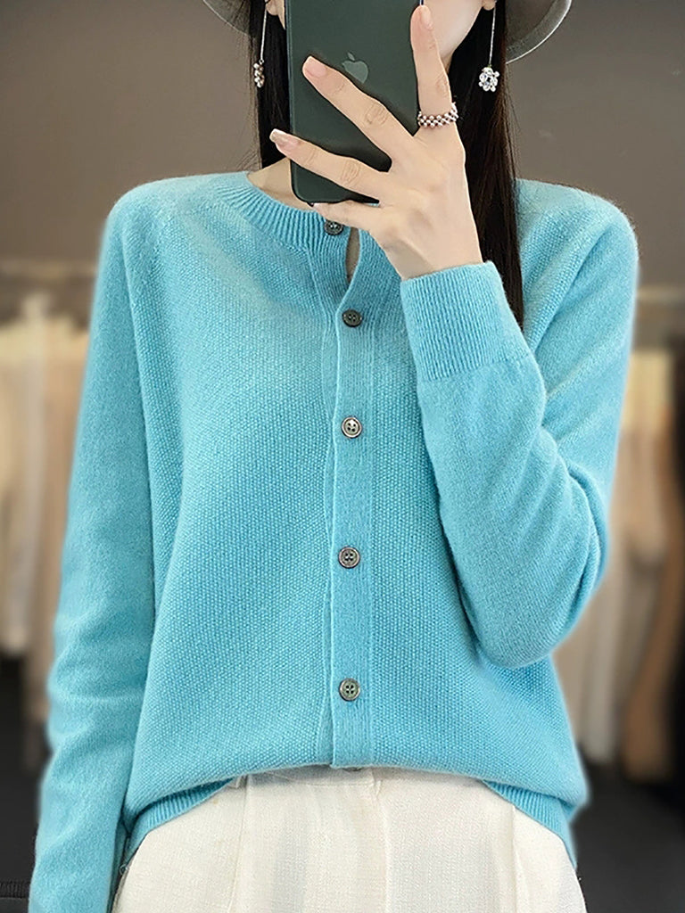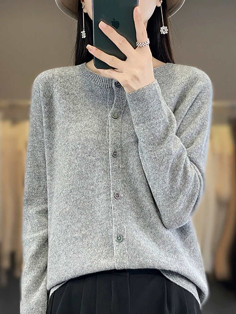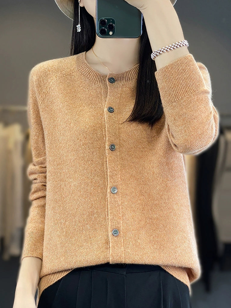 Women Autumn Casual O-Neck Knitted Wool Cardigan Sweater