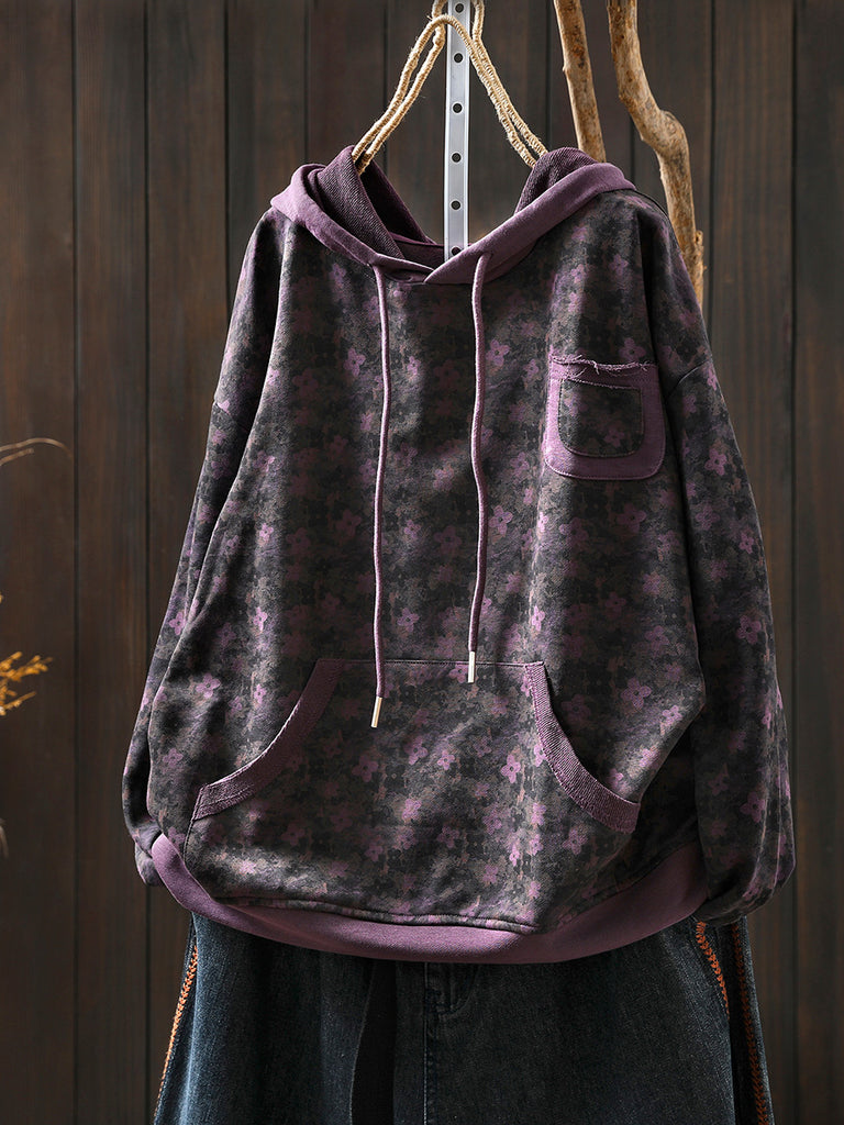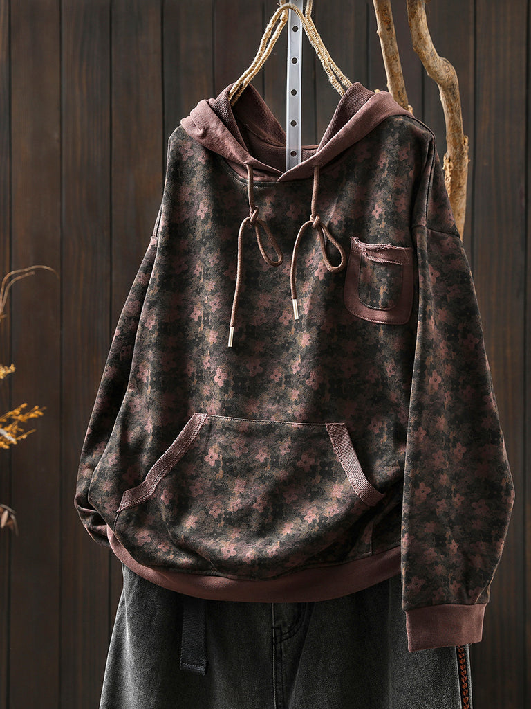 Women Autumn Flower Hooded 100%Cotton Sweatshirt