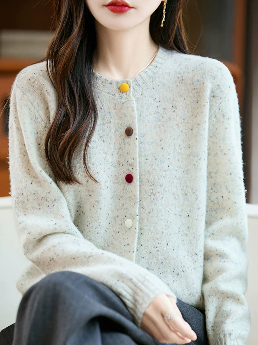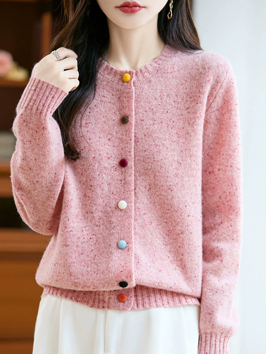 Women Autumn Pure Color Wool O-Neck Cardigan